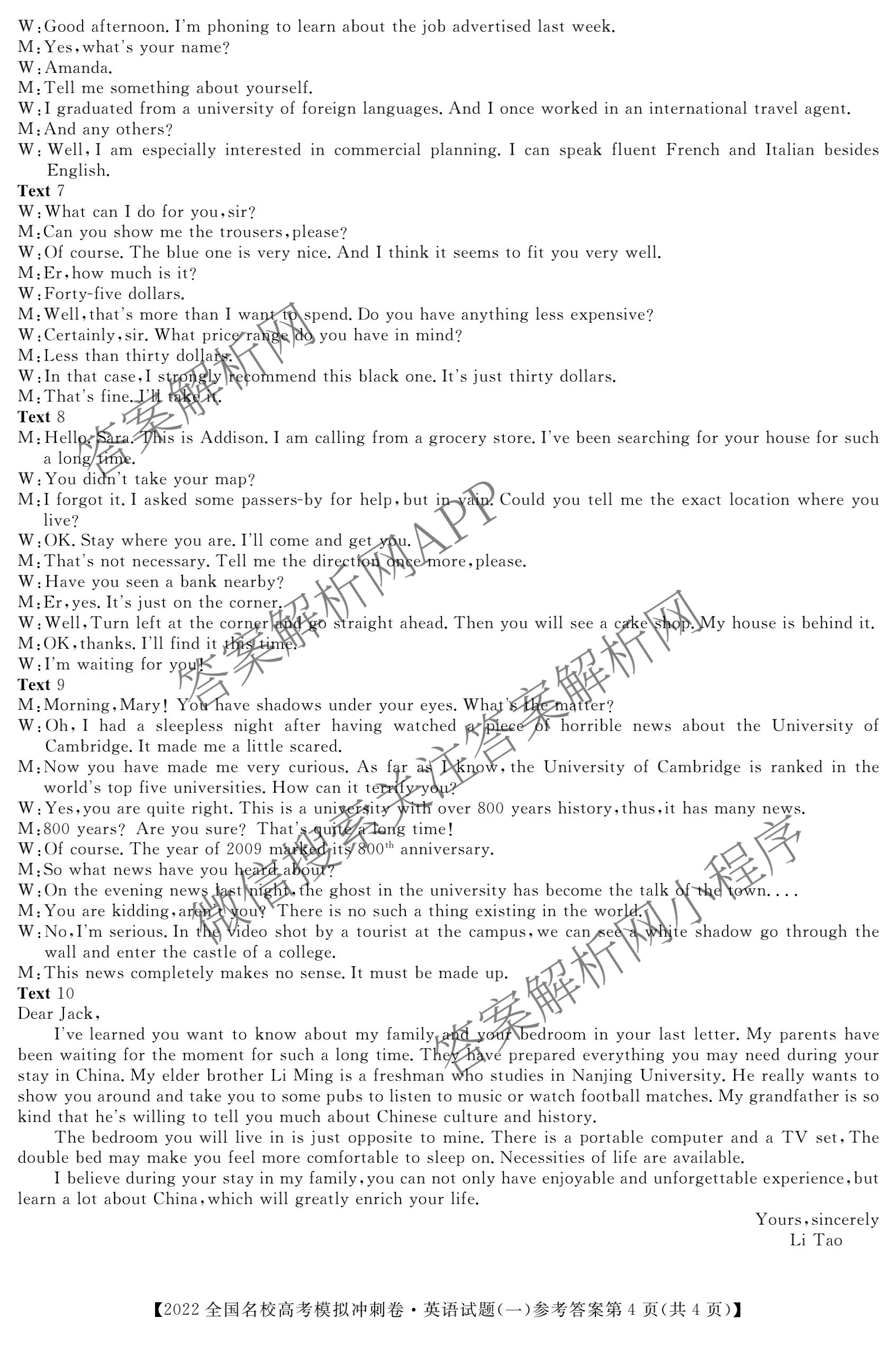- (华普教育)2022全国名校高考模拟冲刺卷(一)英语答案