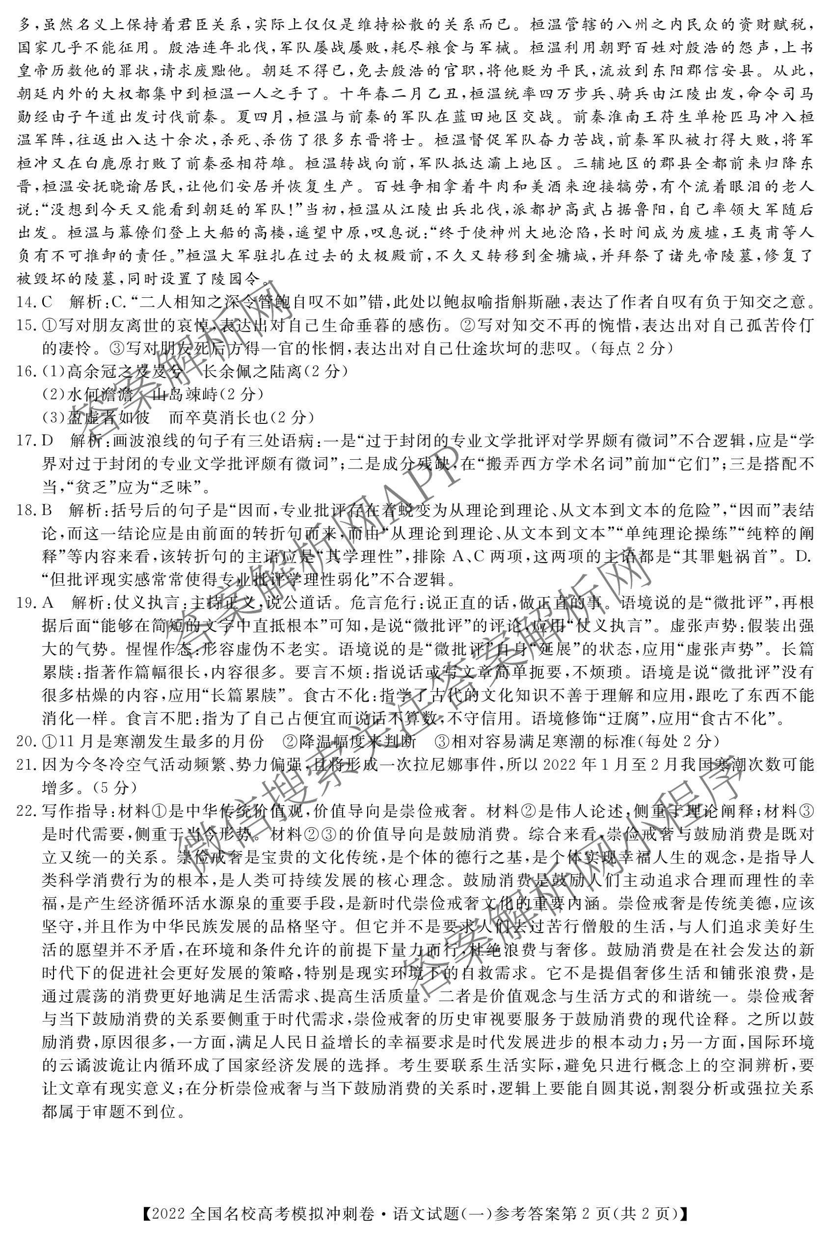 (高三)[华普教育]·2022全国名校高考模拟冲刺卷(一)语文答案
