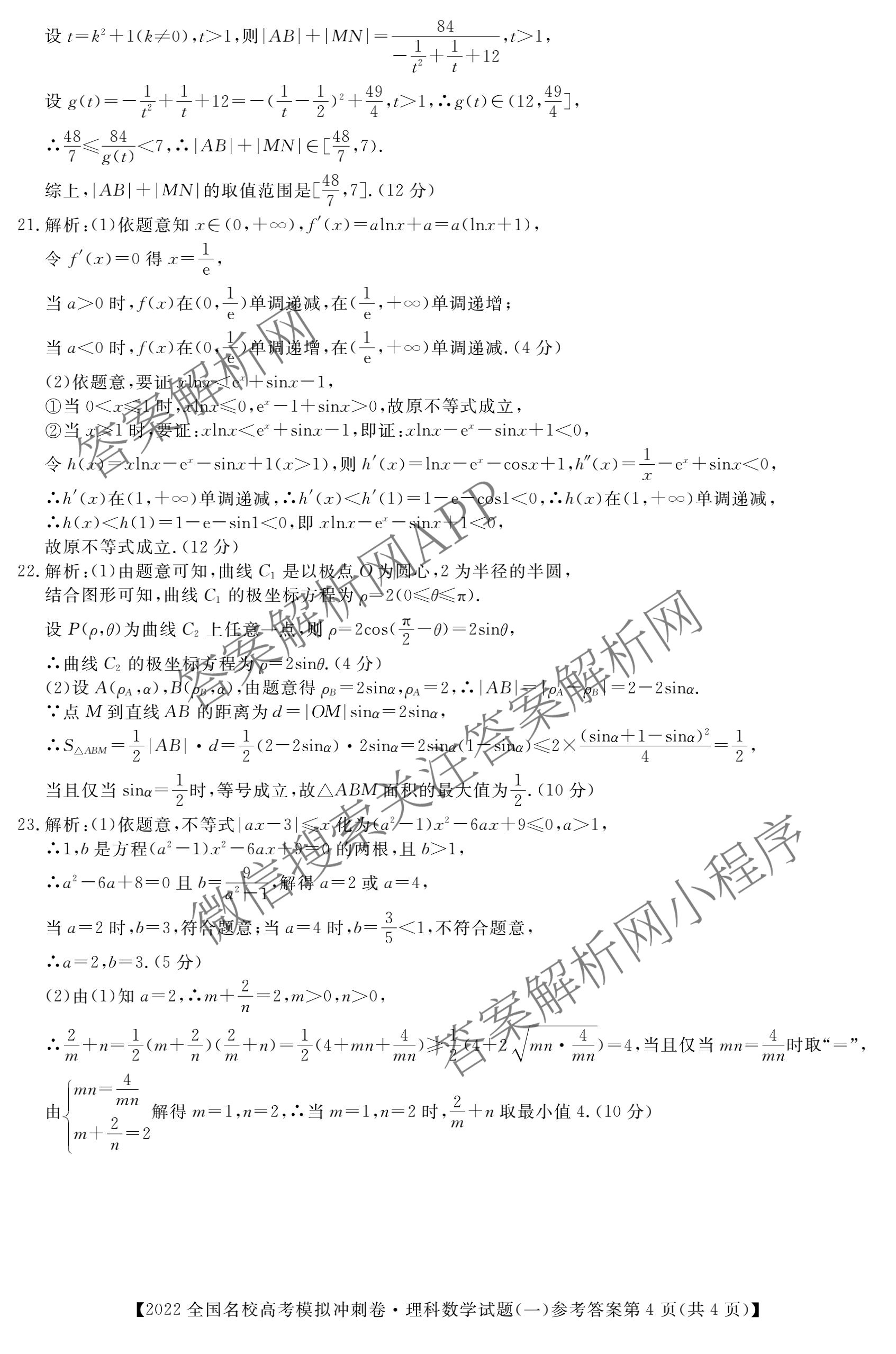 华普教育·2022全国名校高考模拟冲刺卷(一)理科数学答案,目前分科卷答案网已经汇总了华普教育·2022全国名校高考模拟冲刺卷(一)理科数学答案的各科答案和试卷,获取更多华普教育答案解析,请在关注本站。
