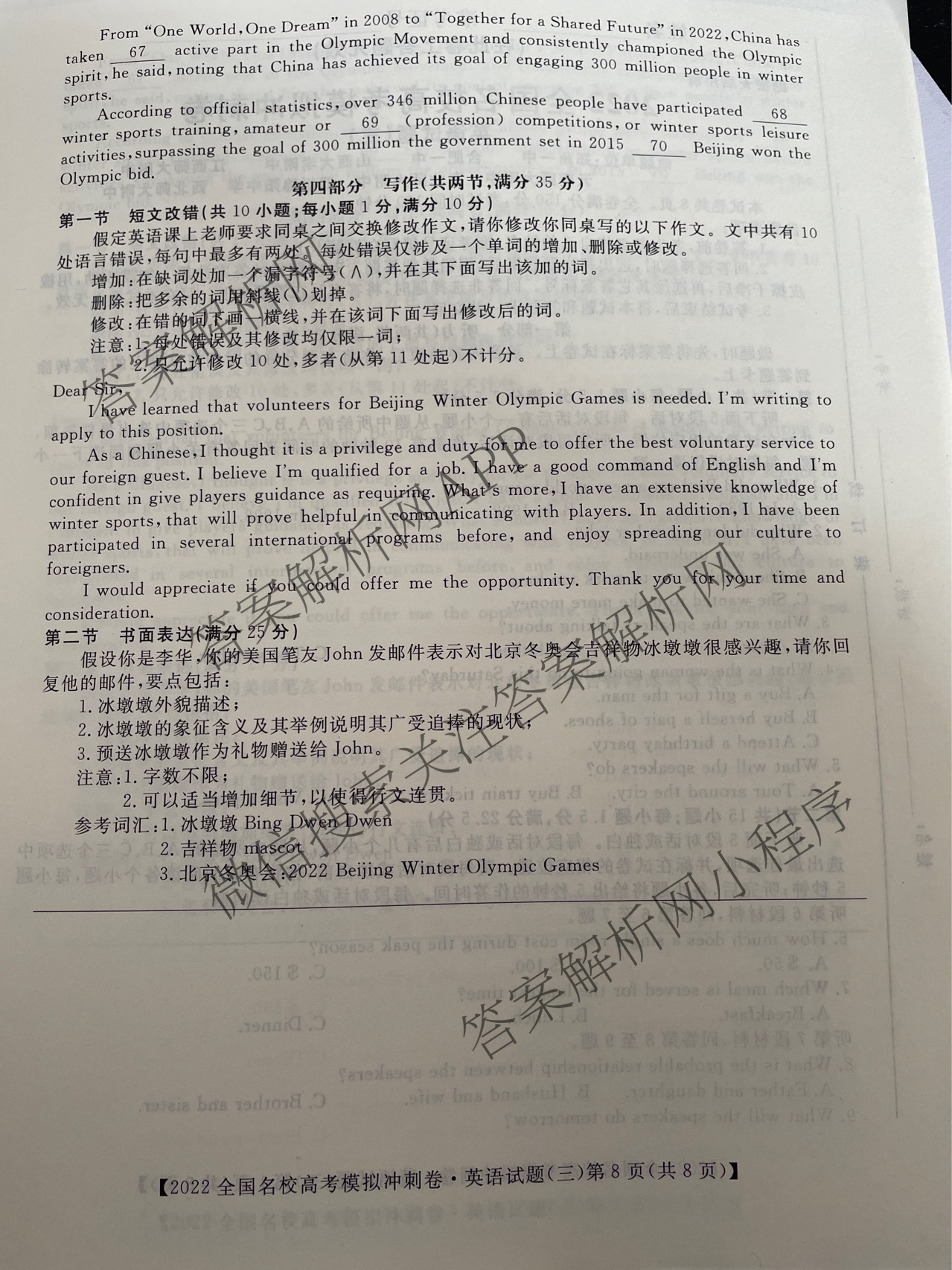 - (华普教育)2022全国名校高考模拟冲刺卷(三)英语答案