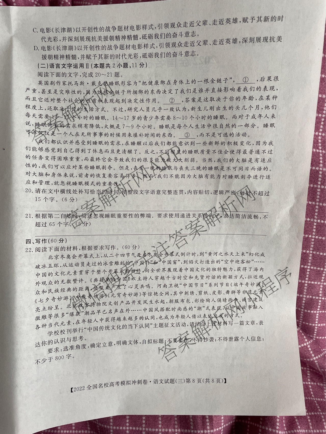 华普教育·2022全国名校高考模拟冲刺卷(三)语文试题,目前分科卷答案网已经汇总了华普教育·2022全国名校高考模拟冲刺卷(三)语文试题的各科答案和试卷,获取更多华普教育答案解析,请在关注本站。