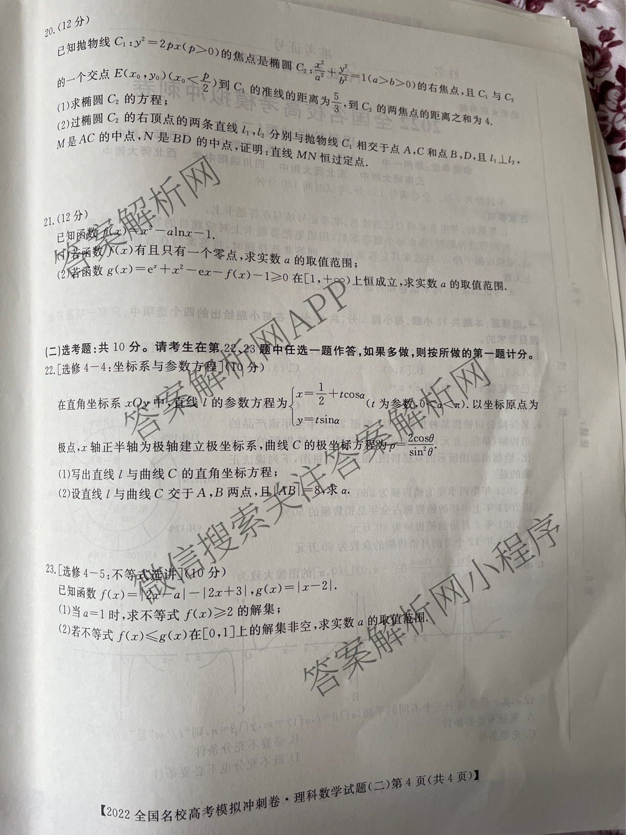华普教育·2022全国名校高考模拟冲刺卷(二)理科数学试题,目前分科卷答案网已经汇总了华普教育·2022全国名校高考模拟冲刺卷(二)理科数学试题的各科答案和试卷,获取更多华普教育答案解析,请在关注本站。