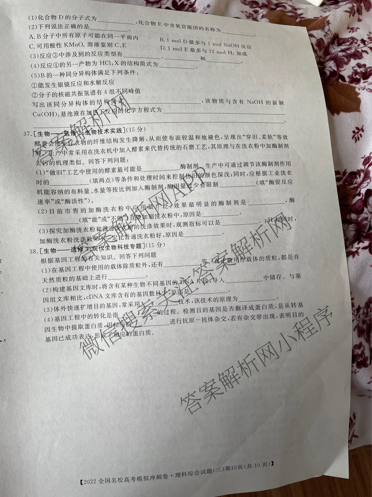 华普教育·2022全国名校高考模拟冲刺卷(三)理科综合试题,目前分科卷答案网已经汇总了华普教育·2022全国名校高考模拟冲刺卷(三)理科综合试题的各科答案和试卷,获取更多华普教育答案解析,请在关注本站。