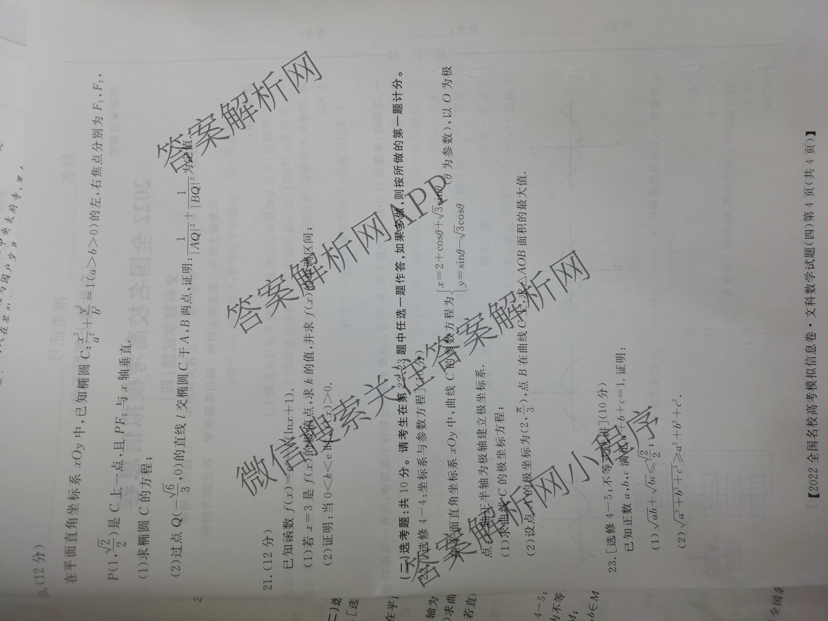 - [高三](华普教育)·2022全国名校高考模拟信息卷(四)文科数学试题