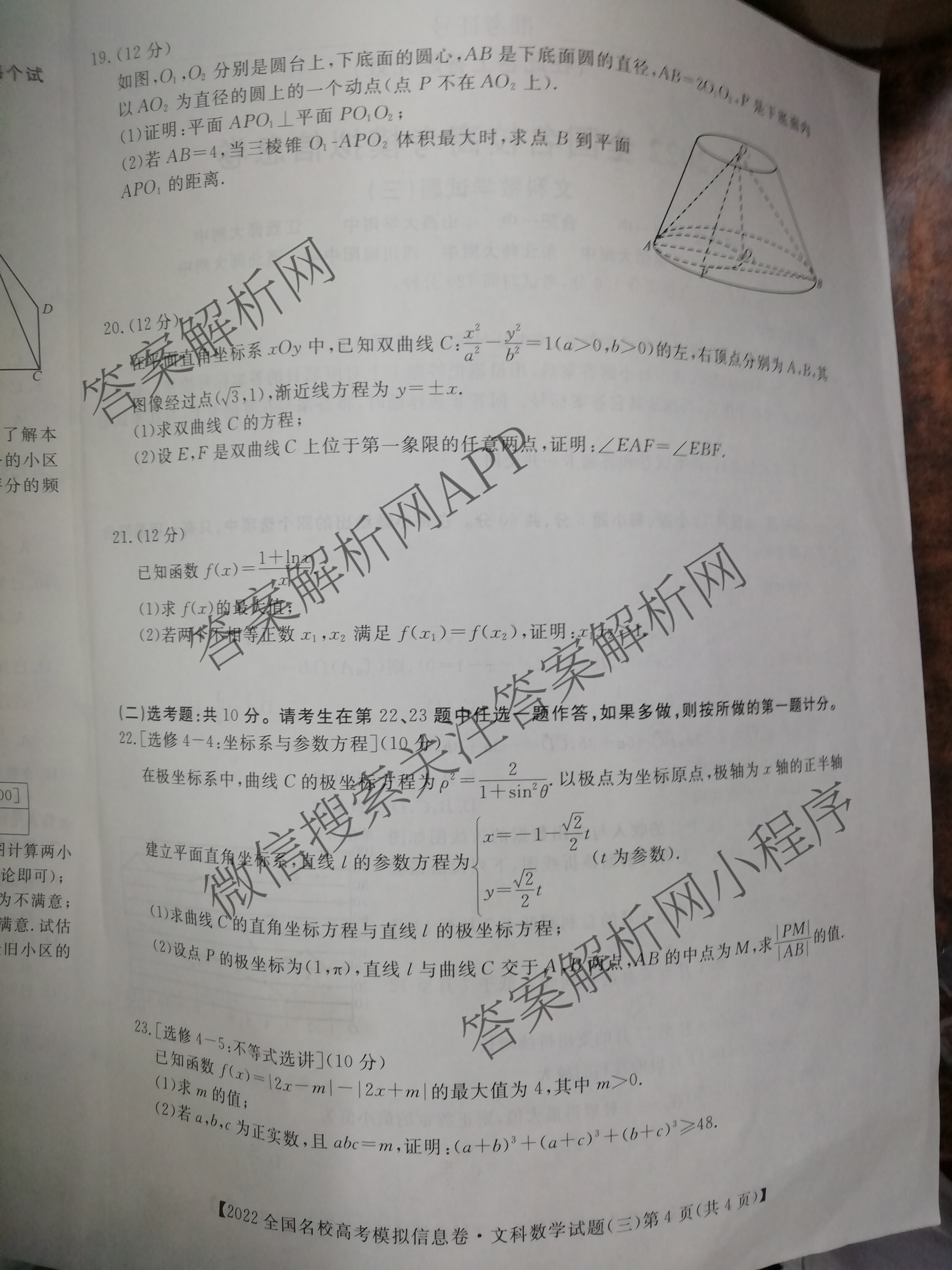 华普教育·2022全国名校高考模拟信息卷(三)文科数学试题,目前分科卷答案网已经汇总了华普教育·2022全国名校高考模拟信息卷(三)文科数学试题的各科答案和试卷,获取更多华普教育答案解析,请在关注本站。