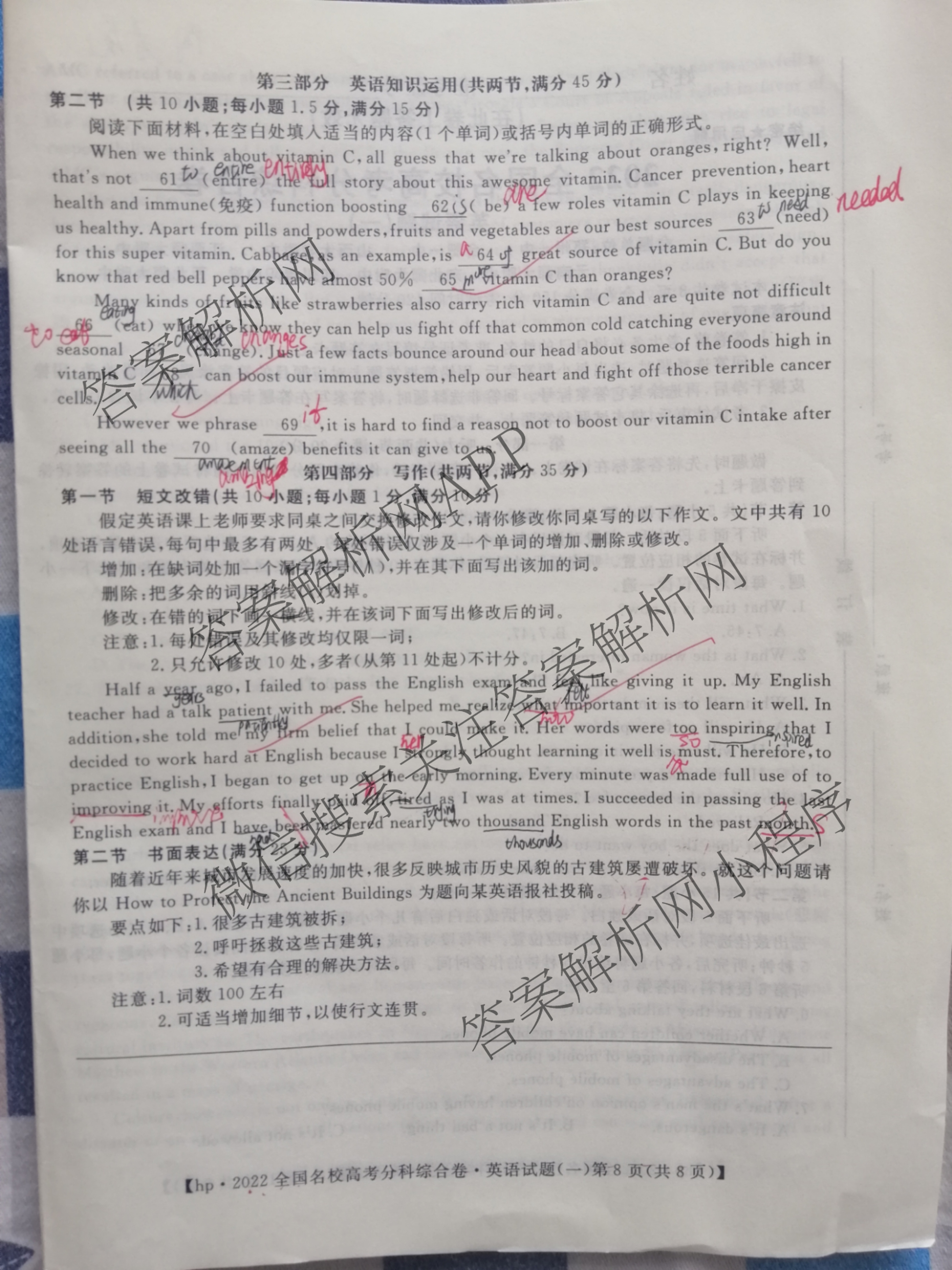 华普教育·2022全国名校高考分科综合卷(一)1英语试题,目前分科卷答案网已经汇总了华普教育·2022全国名校高考分科综合卷(一)1英语试题的各科答案和试卷,获取更多华普教育答案解析,请在关注本站。