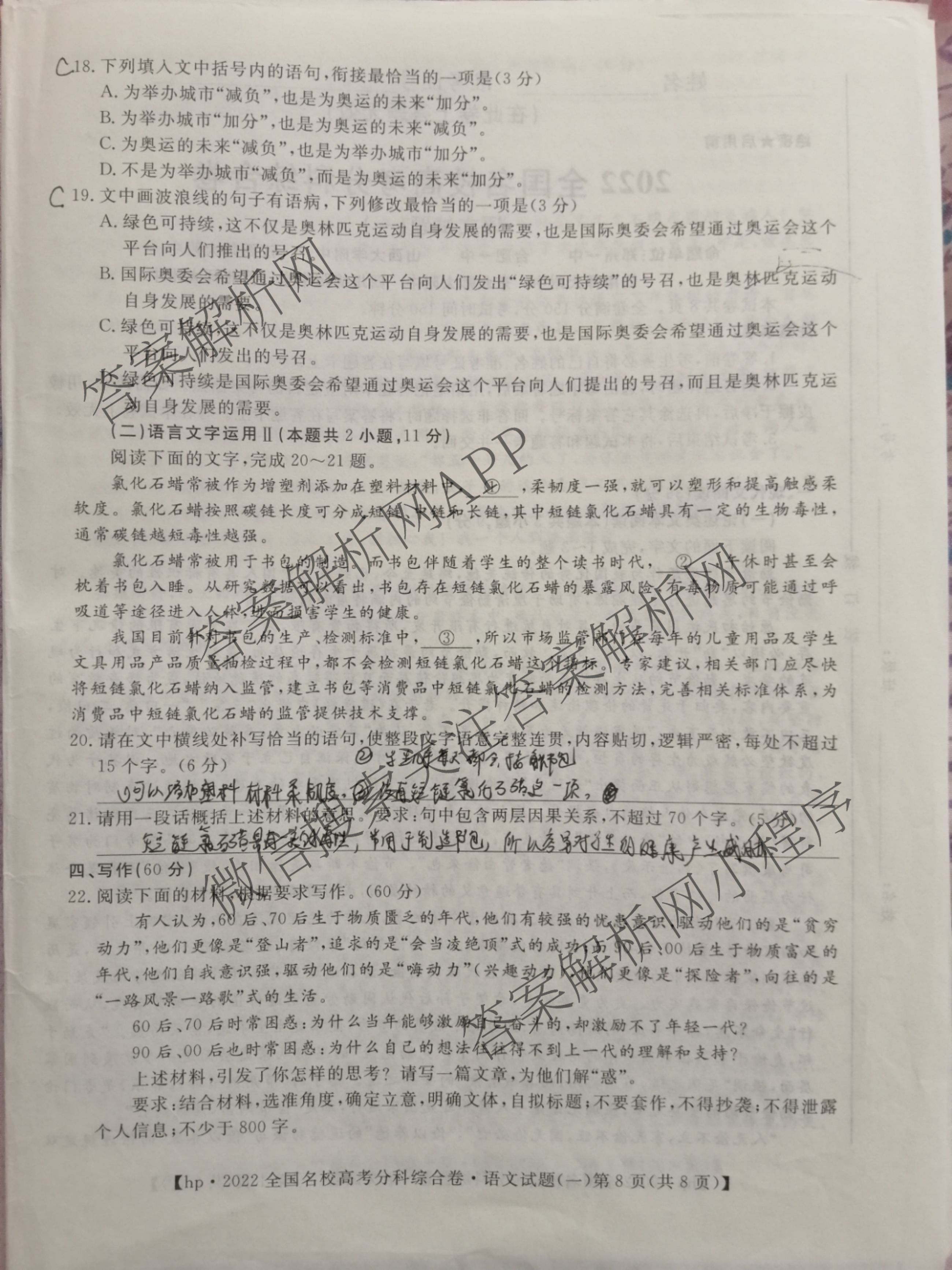 - [高三][华普教育]·2022全国名校高考分科综合卷(一)1语文答案
