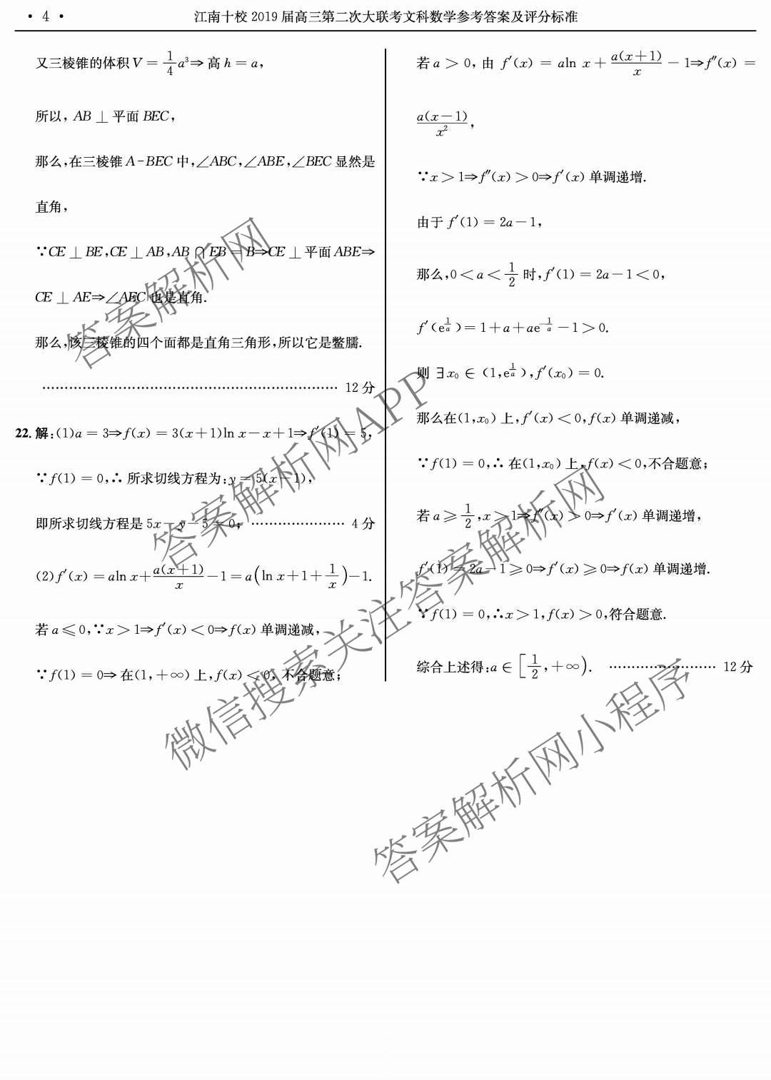 江南十校2019届高三第二次大联考文科数学答案,目前分科卷答案网已经汇总了江南十校2019届高三第二次大联考文科数学答案的各科答案和试卷,获取更多江南十校答案解析,请在关注本站。