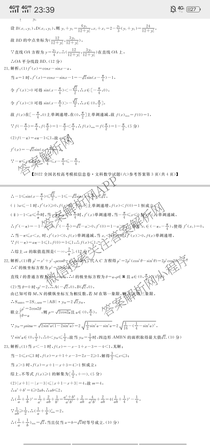 华普教育·2021全国名校高考模拟信息卷(六)文科数学答案,目前分科卷答案网已经汇总了华普教育·2021全国名校高考模拟信息卷(六)文科数学答案的各科答案和试卷,获取更多华普教育答案解析,请在关注本站。