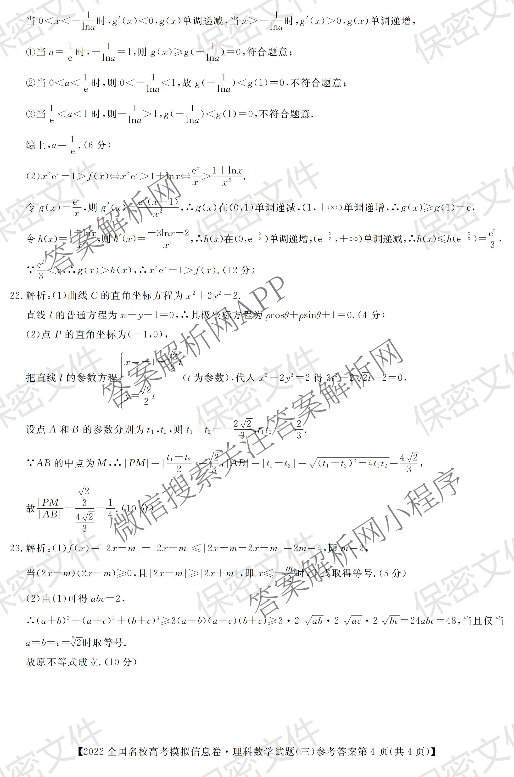 华普教育·2022全国名校高考模拟信息卷(三)理科数学答案,目前分科卷答案网已经汇总了华普教育·2022全国名校高考模拟信息卷(三)理科数学答案的各科答案和试卷,获取更多华普教育答案解析,请在关注本站。