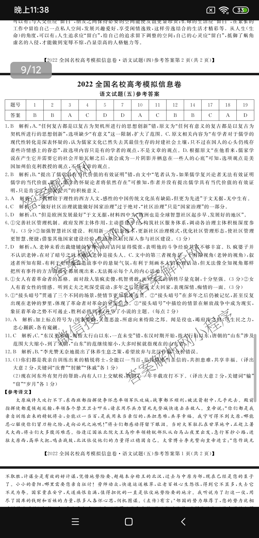 华普教育·2022全国名校高考模拟信息卷(五)语文答案,目前分科卷答案网已经汇总了华普教育·2022全国名校高考模拟信息卷(五)语文答案的各科答案和试卷,获取更多华普教育答案解析,请在关注本站。