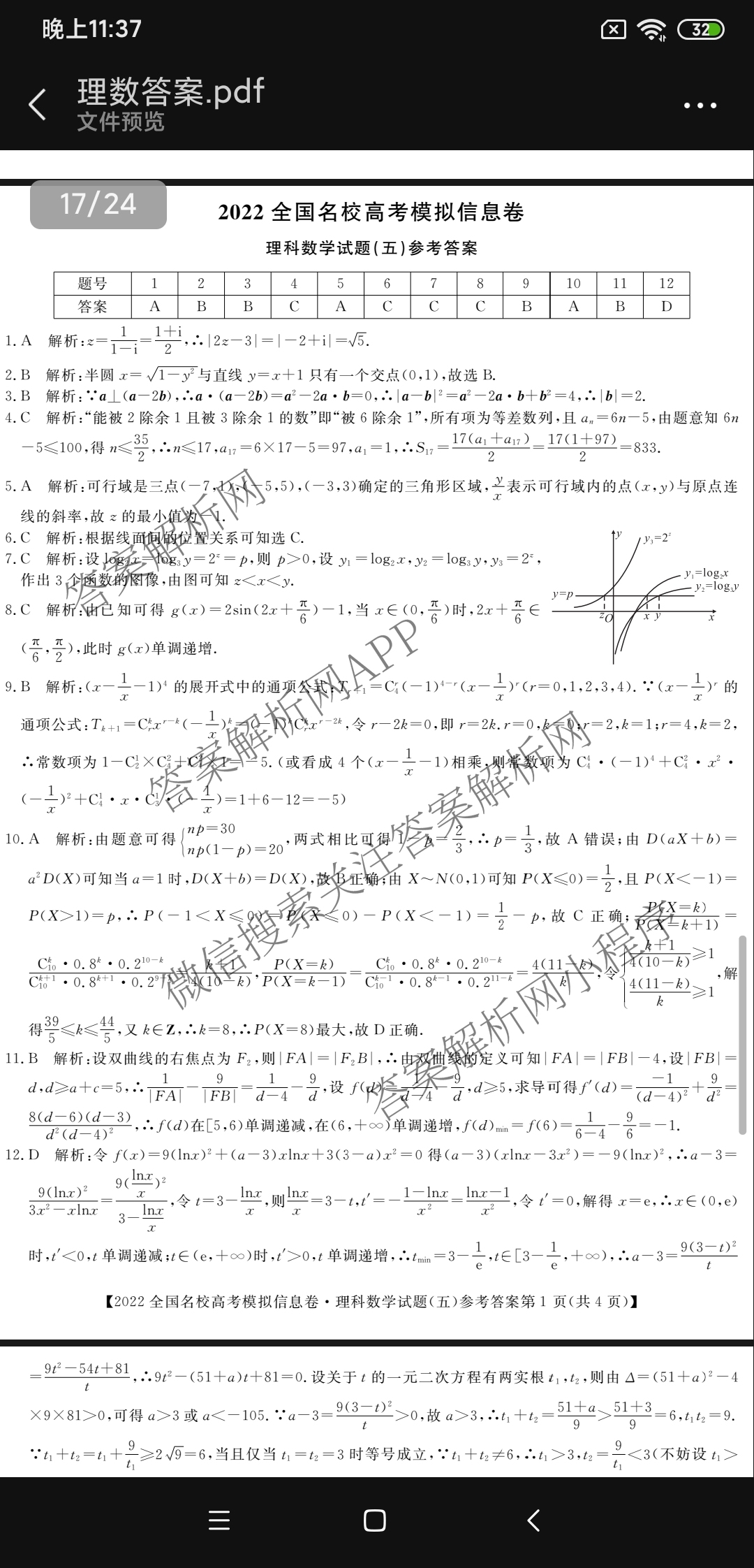 - (高三)(华普教育)·2022全国名校高考模拟信息卷(五)理科数学答案