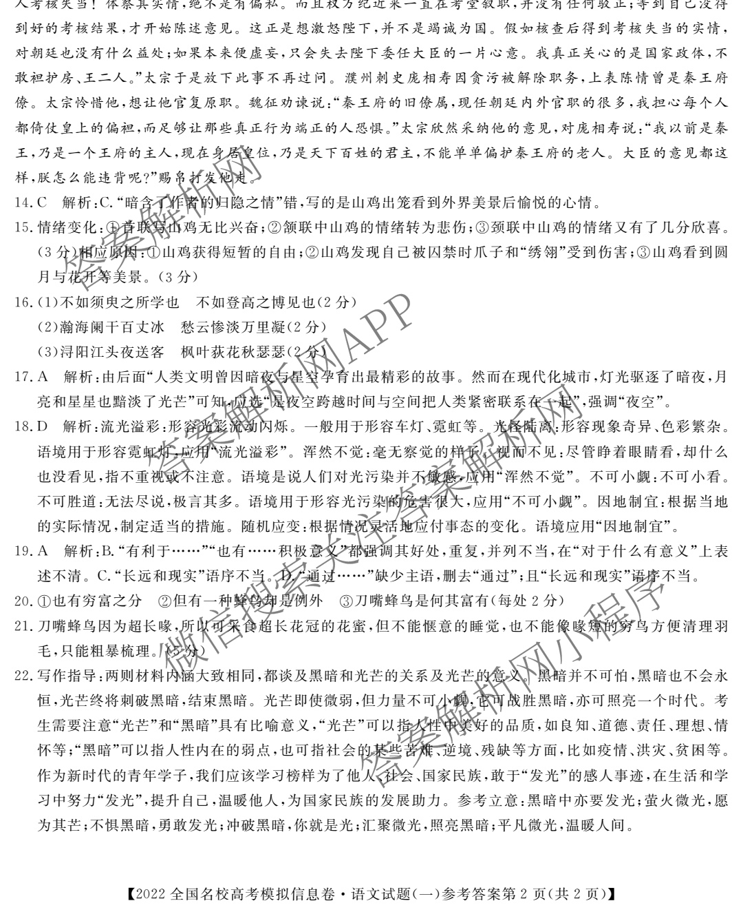 [华普教育]2022全国名校高考模拟信息卷(一)语文答案
