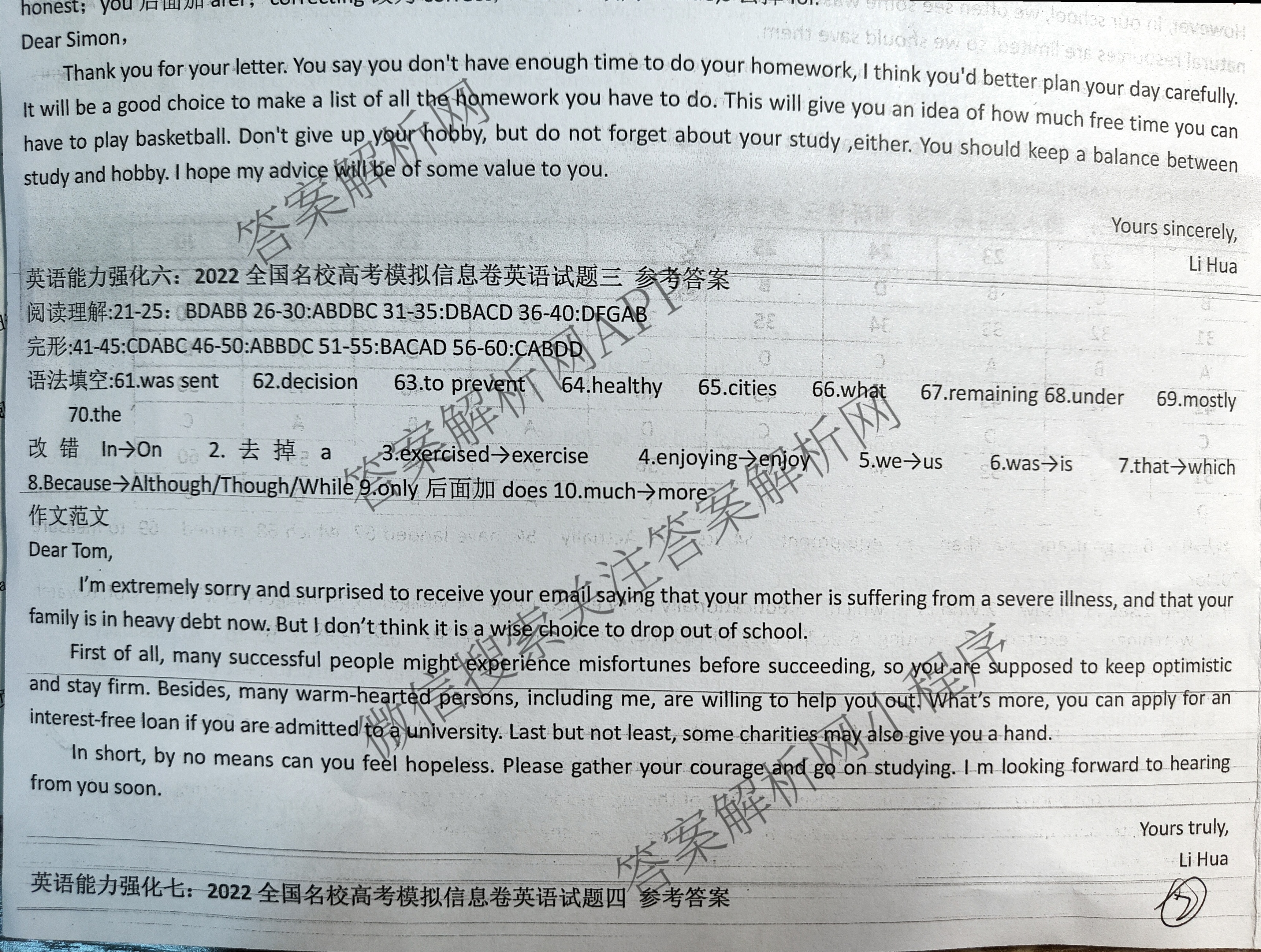 - [华普教育]2022全国名校高考模拟信息卷(三)英语答案