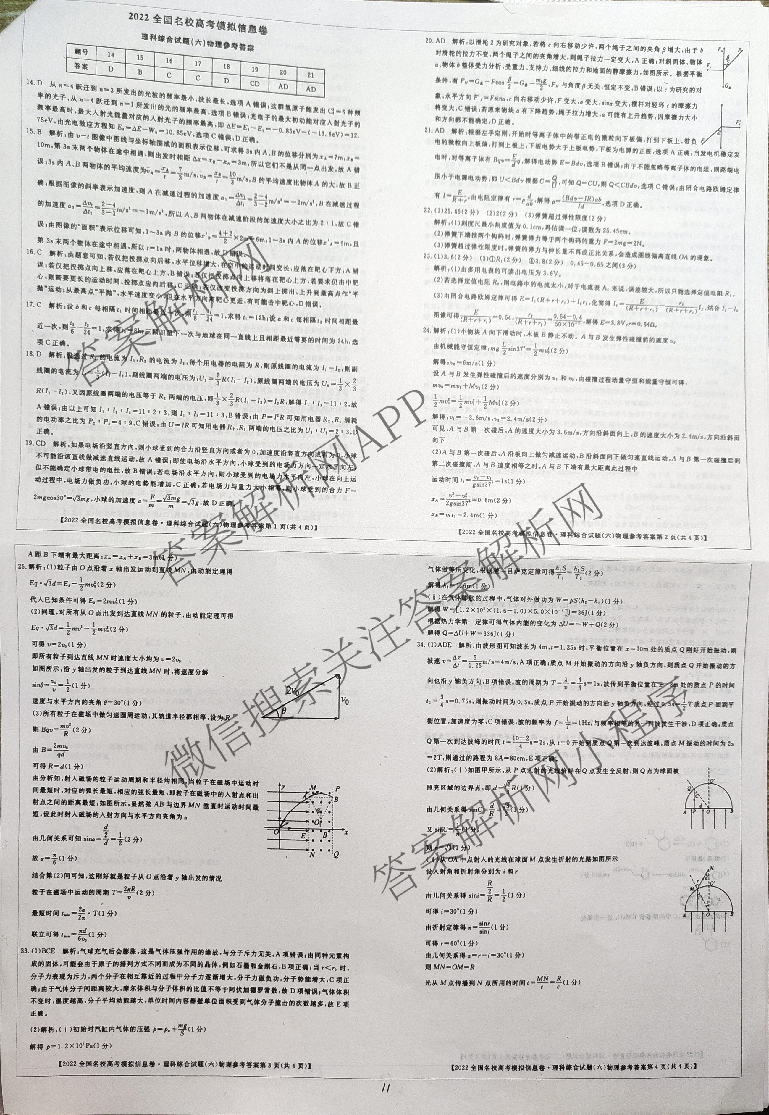 - (高三)(华普教育)2022全国名校高考模拟信息卷(六)理科综合答案
