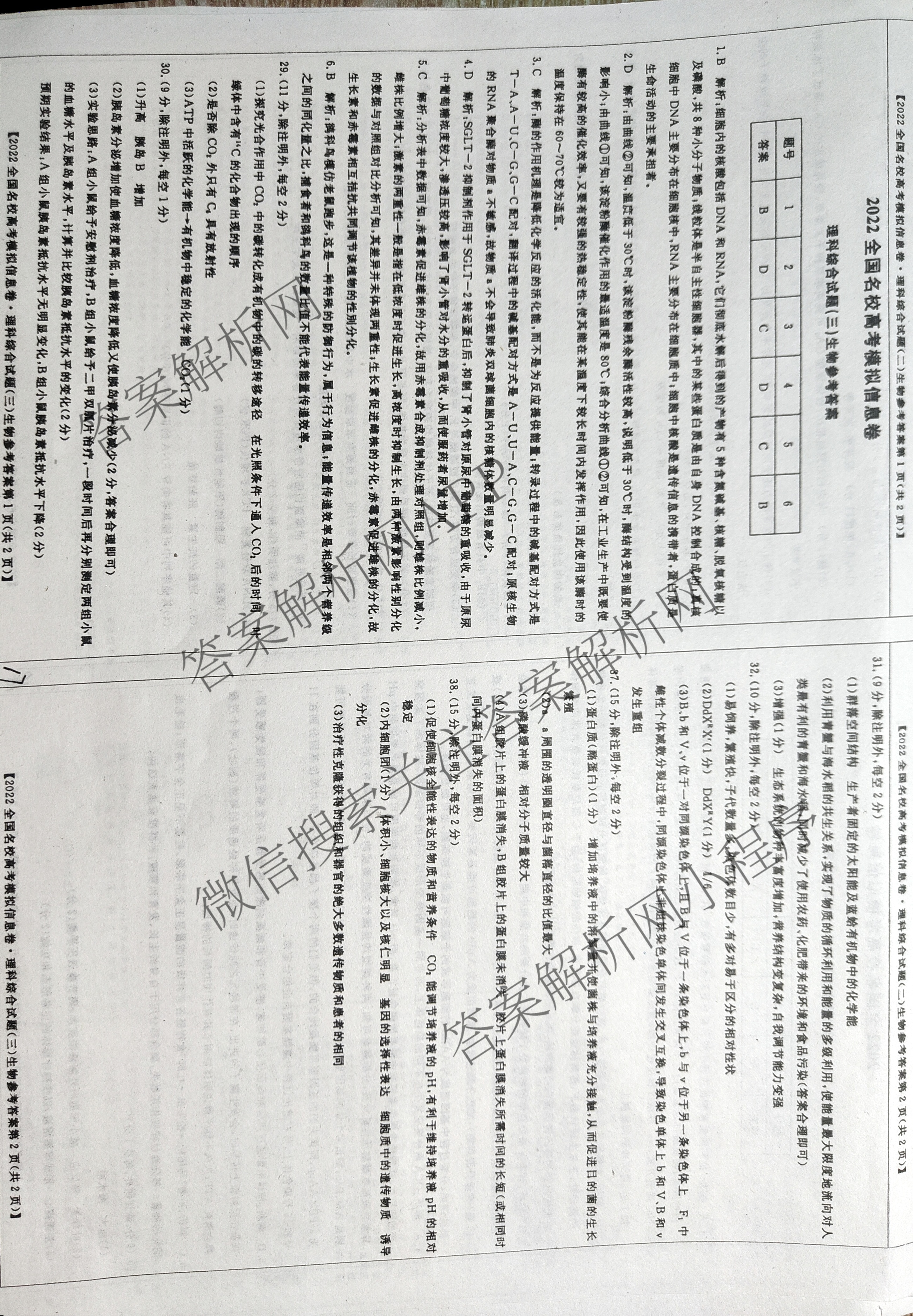 华普教育·2022全国名校高考模拟信息卷(三)理科综合答案,目前分科卷答案网已经汇总了华普教育·2022全国名校高考模拟信息卷(三)理科综合答案的各科答案和试卷,获取更多华普教育答案解析,请在关注本站。