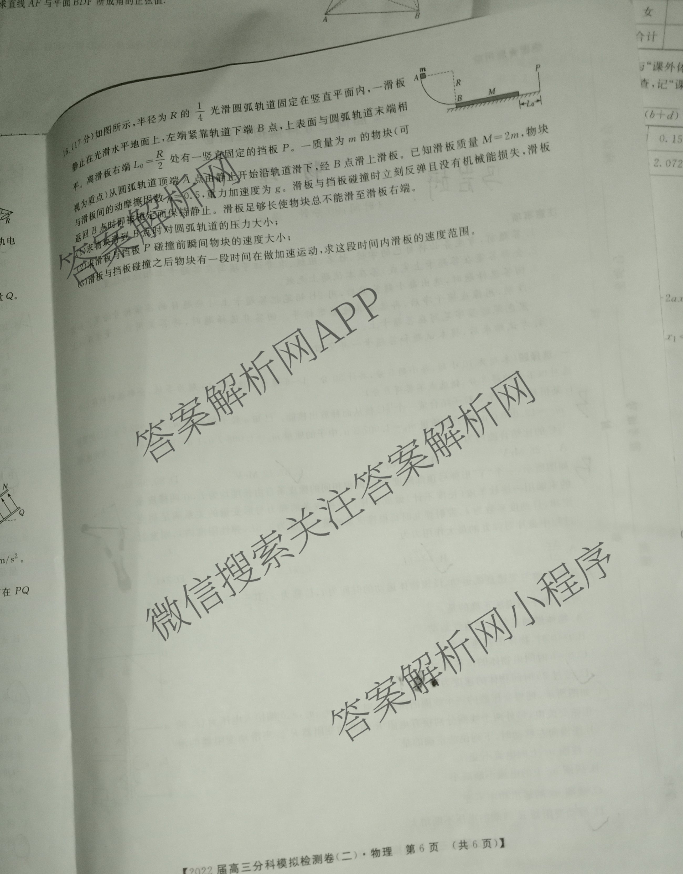 2022届高三分科模拟检测卷(二)物理试题,目前分科卷答案网已经汇总了2022届高三分科模拟检测卷(二)物理试题的各科答案和试卷,获取更多高三分科模拟检测卷答案解析,请在关注本站。