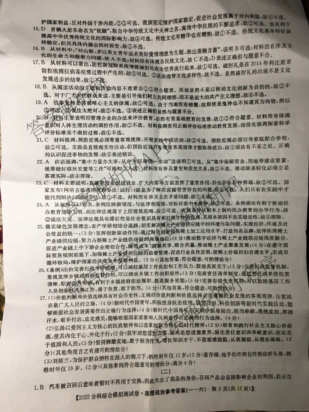 2022届全国高考分科综合模拟测试卷(一)政治答案,目前分科卷答案网已经汇总了2022届全国高考分科综合模拟测试卷(一)政治答案的各科答案和试卷,获取更多全国高考分科综合模拟测试卷答案解析,请在关注本站。
