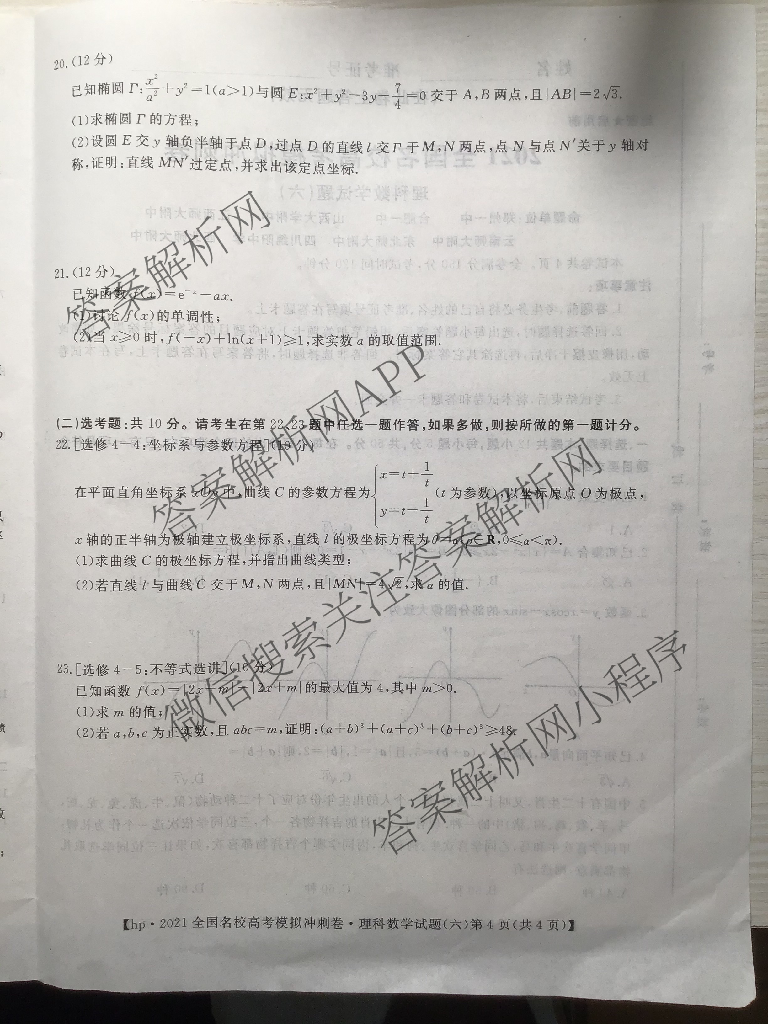 华普教育·2021全国名校高考模拟冲刺卷(六)理科数学试题,目前分科卷答案网已经汇总了华普教育·2021全国名校高考模拟冲刺卷(六)理科数学试题的各科答案和试卷,获取更多华普教育答案解析,请在关注本站。