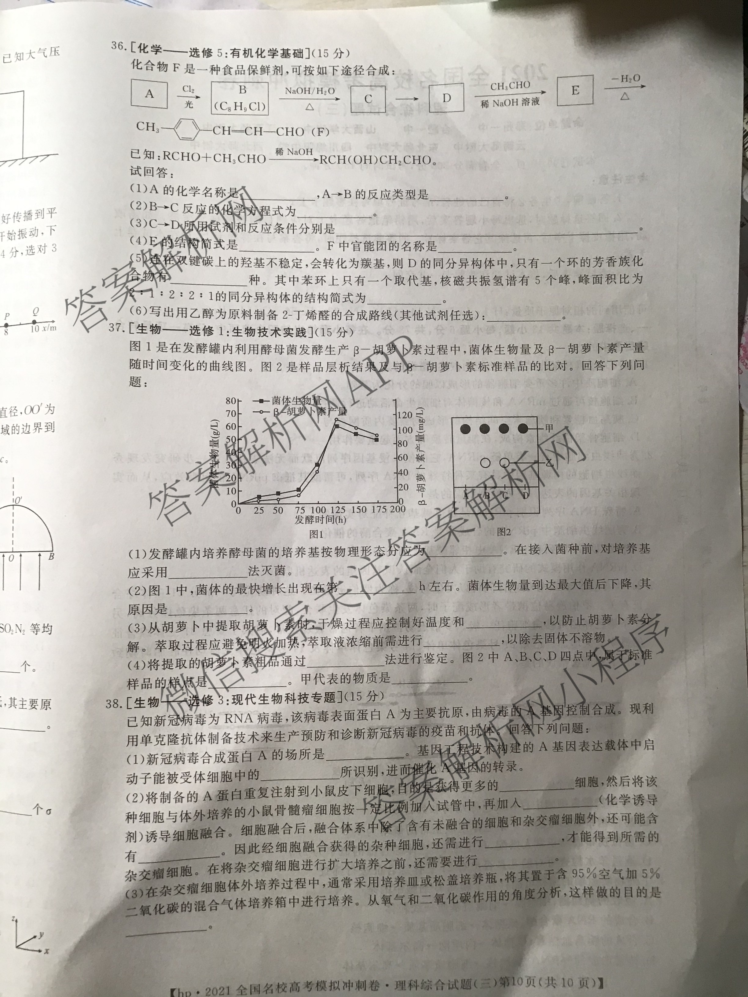 华普教育·2021全国名校高考模拟冲刺卷(三)理科综合试题,目前分科卷答案网已经汇总了华普教育·2021全国名校高考模拟冲刺卷(三)理科综合试题的各科答案和试卷,获取更多华普教育答案解析,请在关注本站。