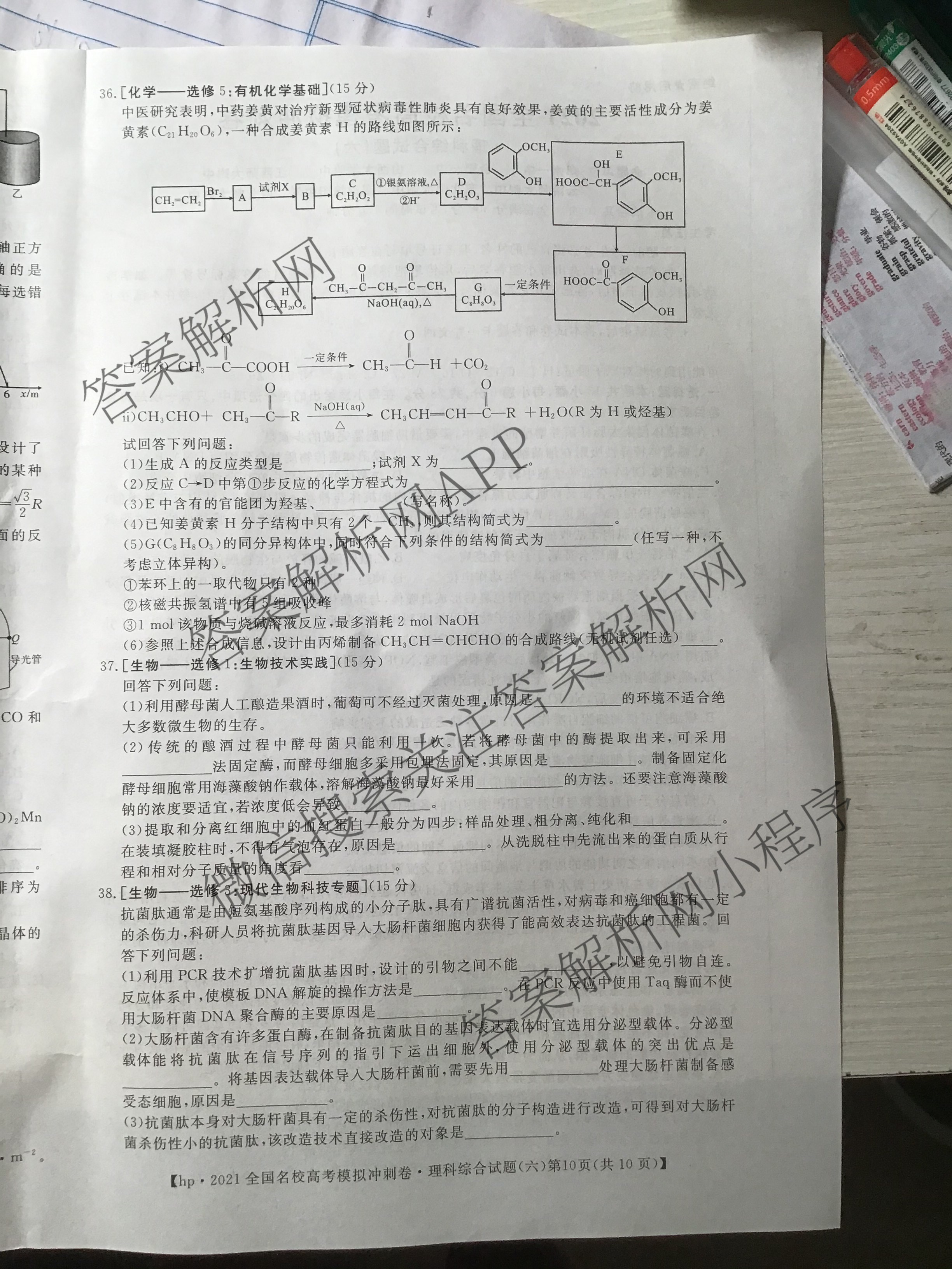 华普教育·2021全国名校高考模拟冲刺卷(六)理科综合试题,目前分科卷答案网已经汇总了华普教育·2021全国名校高考模拟冲刺卷(六)理科综合试题的各科答案和试卷,获取更多华普教育答案解析,请在关注本站。