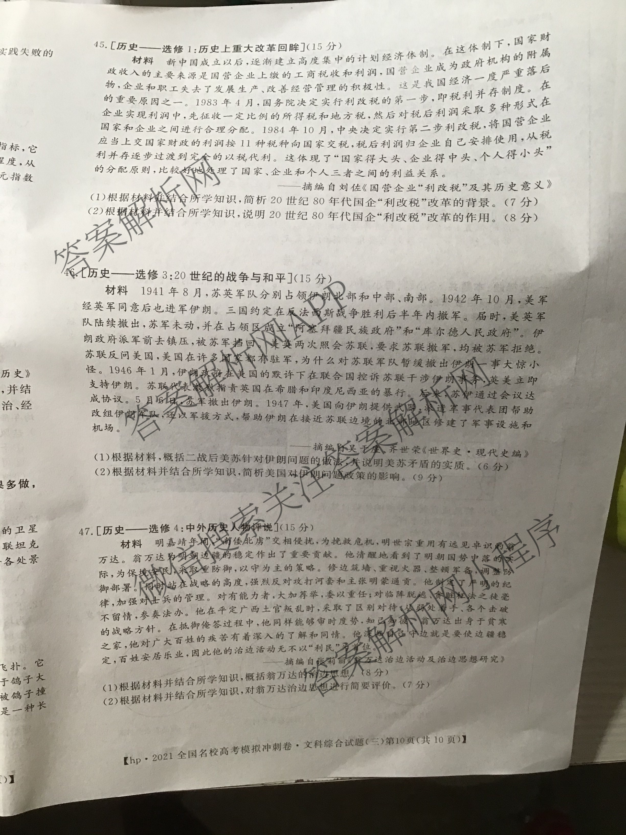 - (高三)[华普教育]·2021全国名校高考模拟冲刺卷(三)文科综合答案