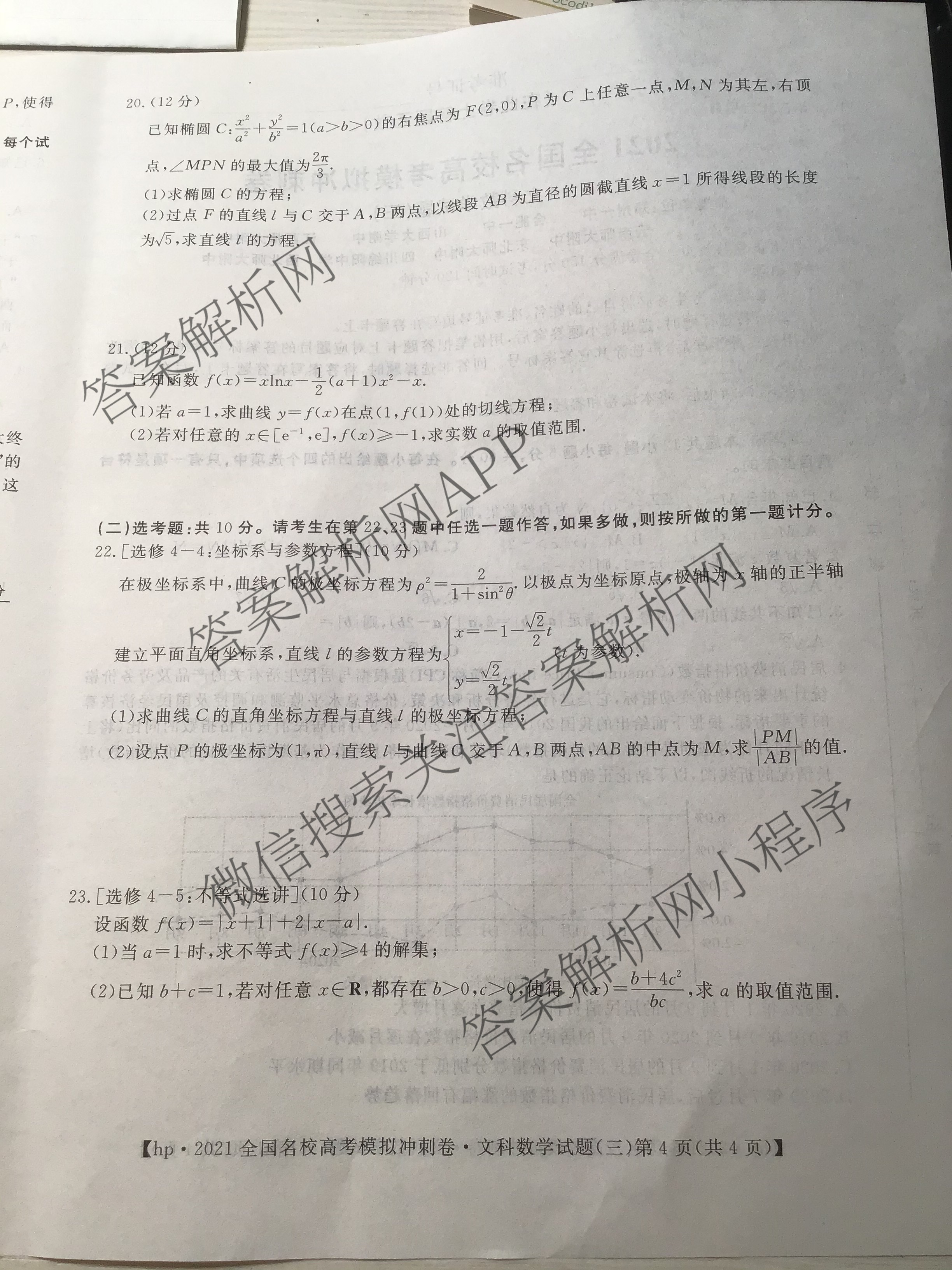 华普教育·2021全国名校高考模拟冲刺卷(三)文科数学试题,目前分科卷答案网已经汇总了华普教育·2021全国名校高考模拟冲刺卷(三)文科数学试题的各科答案和试卷,获取更多华普教育答案解析,请在关注本站。