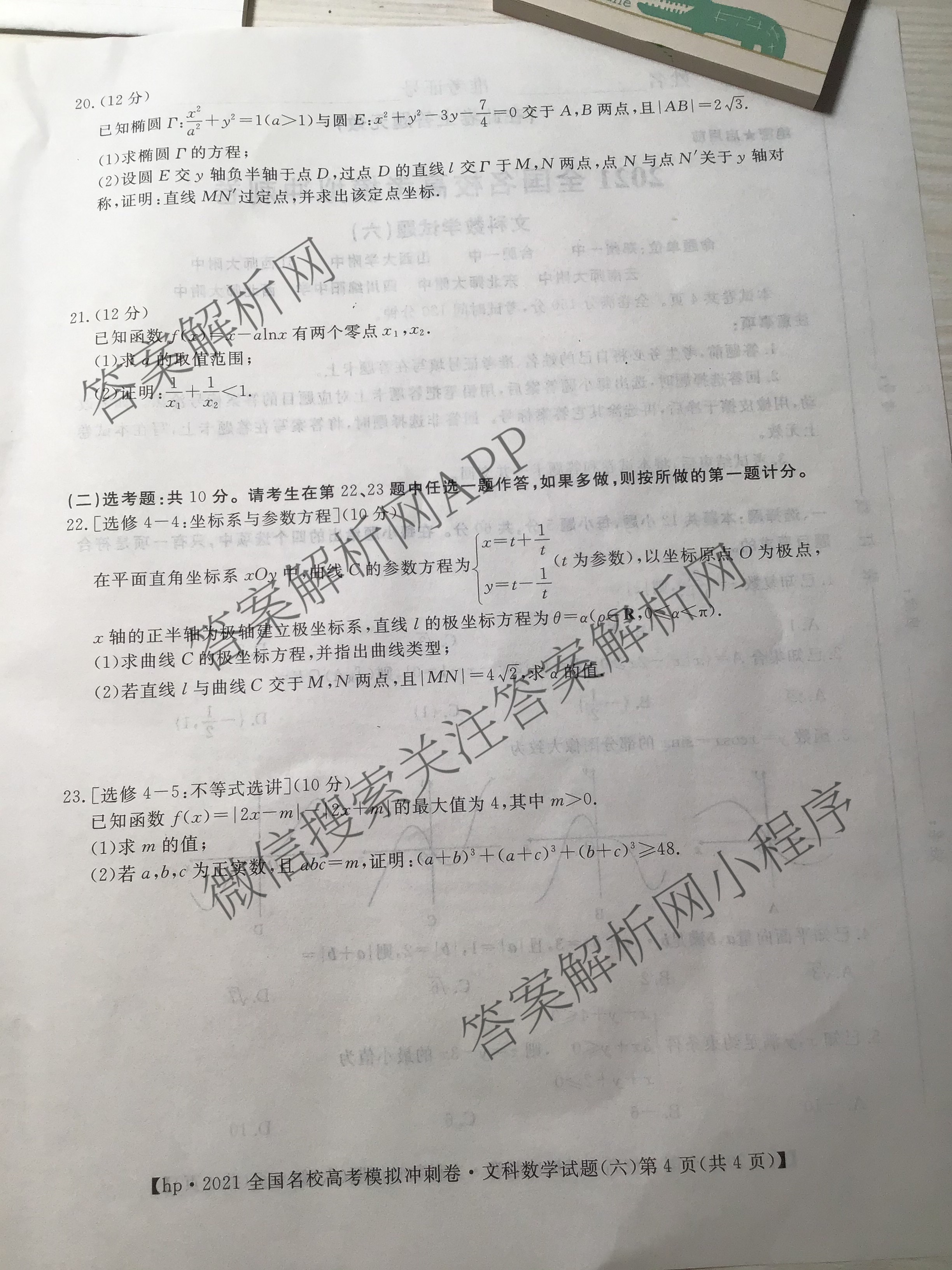 华普教育·2021全国名校高考模拟冲刺卷(六)文科数学试题,目前分科卷答案网已经汇总了华普教育·2021全国名校高考模拟冲刺卷(六)文科数学试题的各科答案和试卷,获取更多华普教育答案解析,请在关注本站。