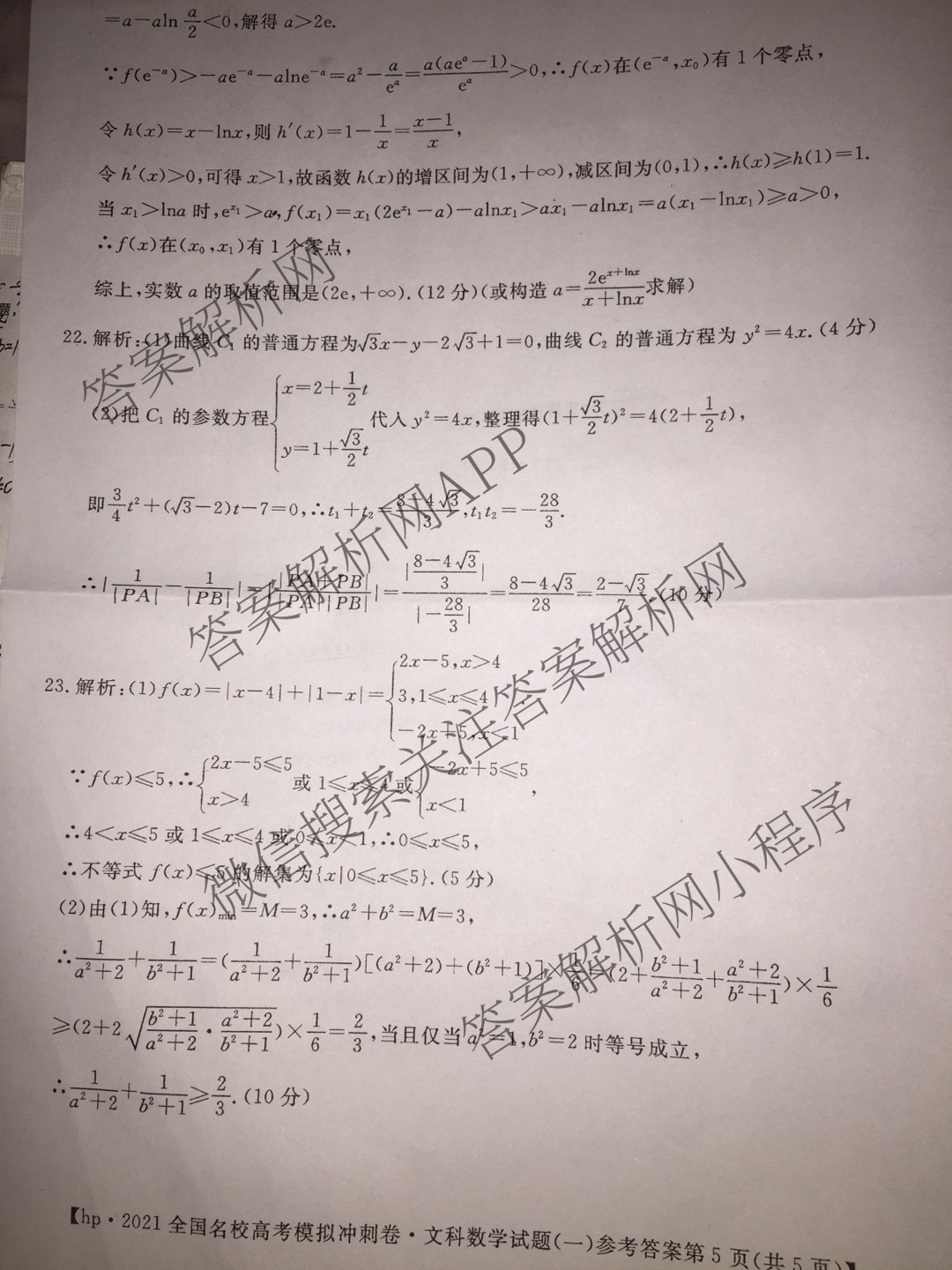 华普教育·2021全国名校高考模拟冲刺卷(一)文科数学答案,目前分科卷答案网已经汇总了华普教育·2021全国名校高考模拟冲刺卷(一)文科数学答案的各科答案和试卷,获取更多华普教育答案解析,请在关注本站。
