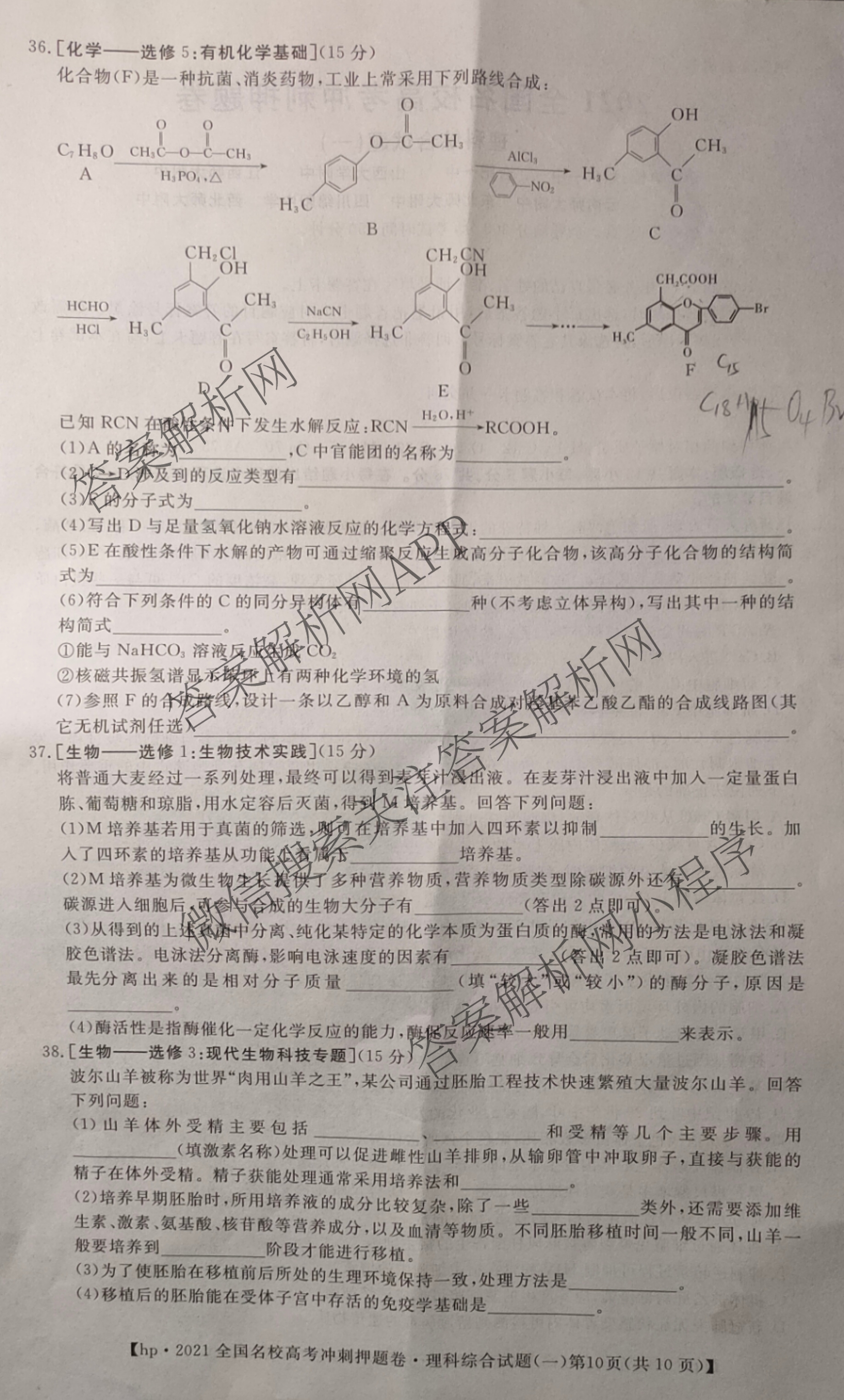 华普教育·2021全国名校高考冲刺押题卷(一)1理科综合试题,目前分科卷答案网已经汇总了华普教育·2021全国名校高考冲刺押题卷(一)1理科综合试题的各科答案和试卷,获取更多华普教育答案解析,请在关注本站。