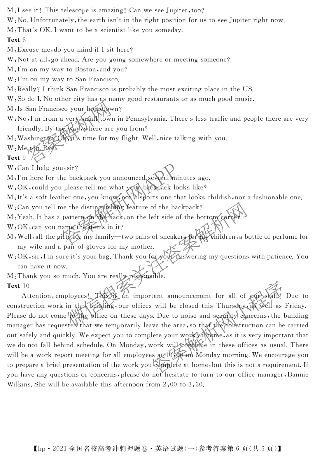 - (高三)[华普教育]·2021全国名校高考冲刺押题卷(一)1英语答案