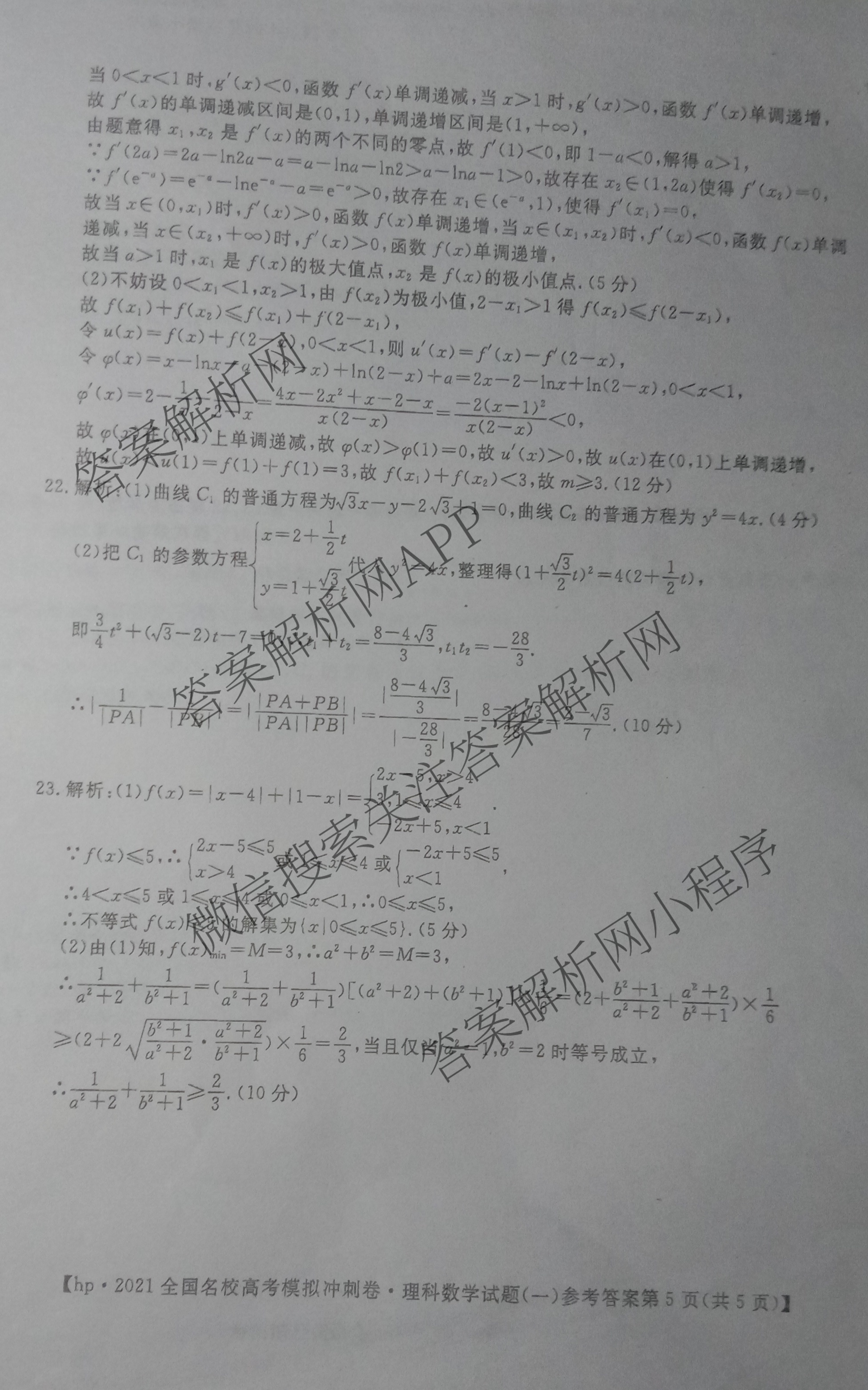 华普教育·2021全国名校高考模拟冲刺卷(一)理科数学答案,目前分科卷答案网已经汇总了华普教育·2021全国名校高考模拟冲刺卷(一)理科数学答案的各科答案和试卷,获取更多华普教育答案解析,请在关注本站。