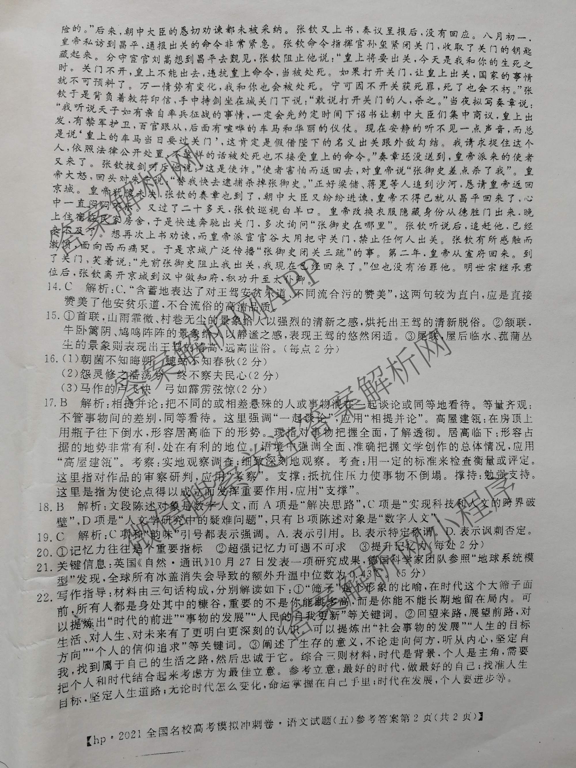 - (高三)(华普教育)2021全国名校高考模拟冲刺卷(五)语文答案