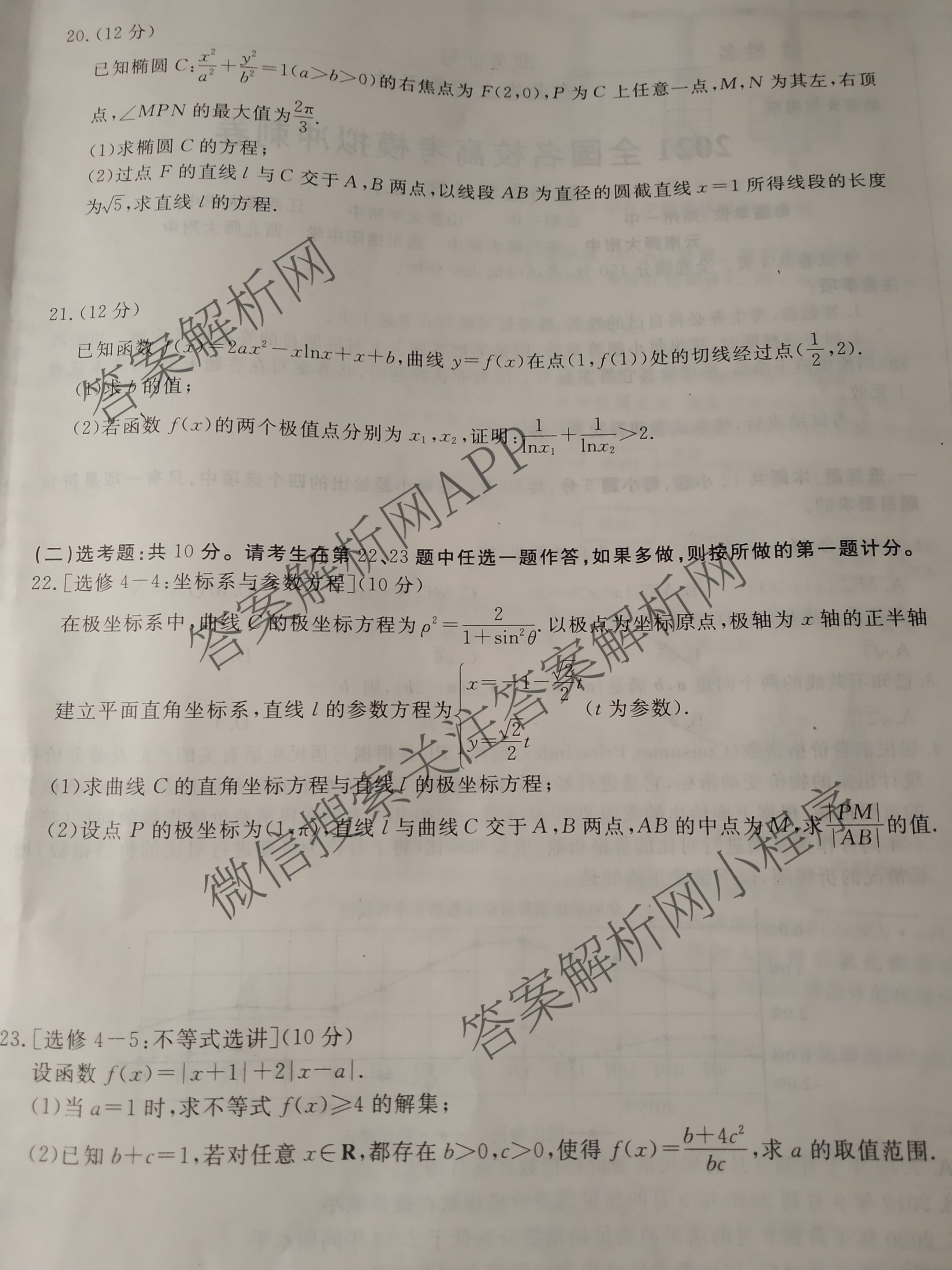 华普教育·2021全国名校高考模拟冲刺卷(三)理科数学试题,目前分科卷答案网已经汇总了华普教育·2021全国名校高考模拟冲刺卷(三)理科数学试题的各科答案和试卷,获取更多华普教育答案解析,请在关注本站。