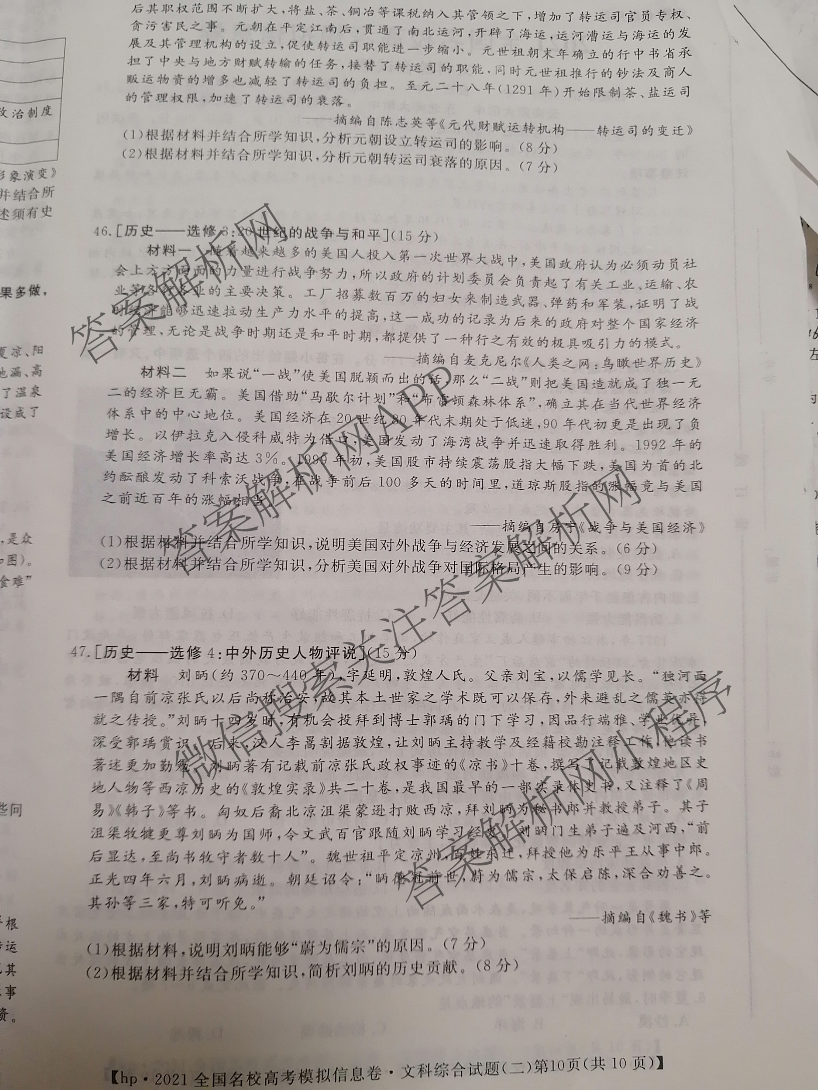 - (华普教育)·2021全国名校高考模拟信息卷(二)文科综合试题