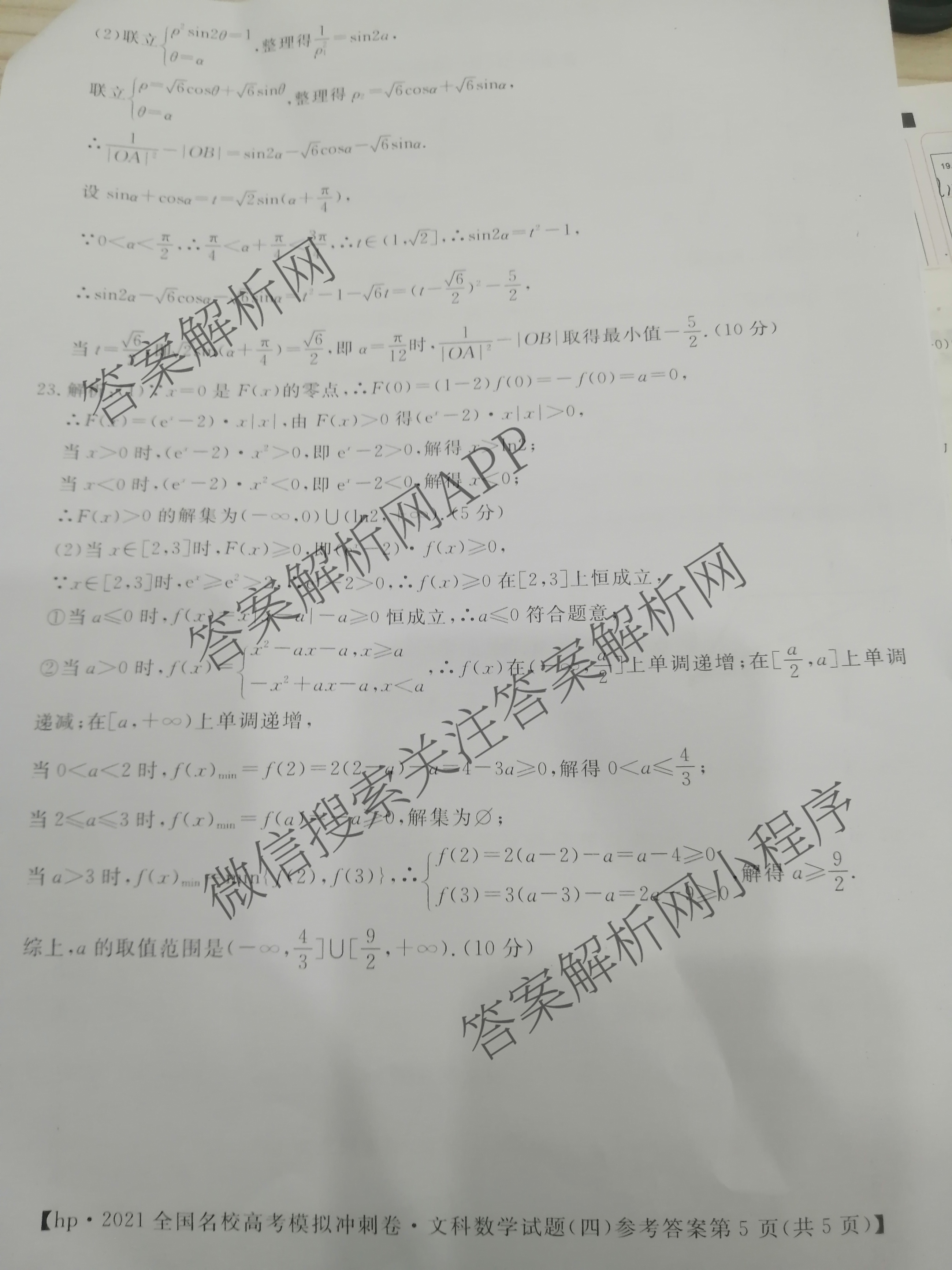 - [华普教育]2021全国名校高考模拟冲刺卷(四)文科数学答案