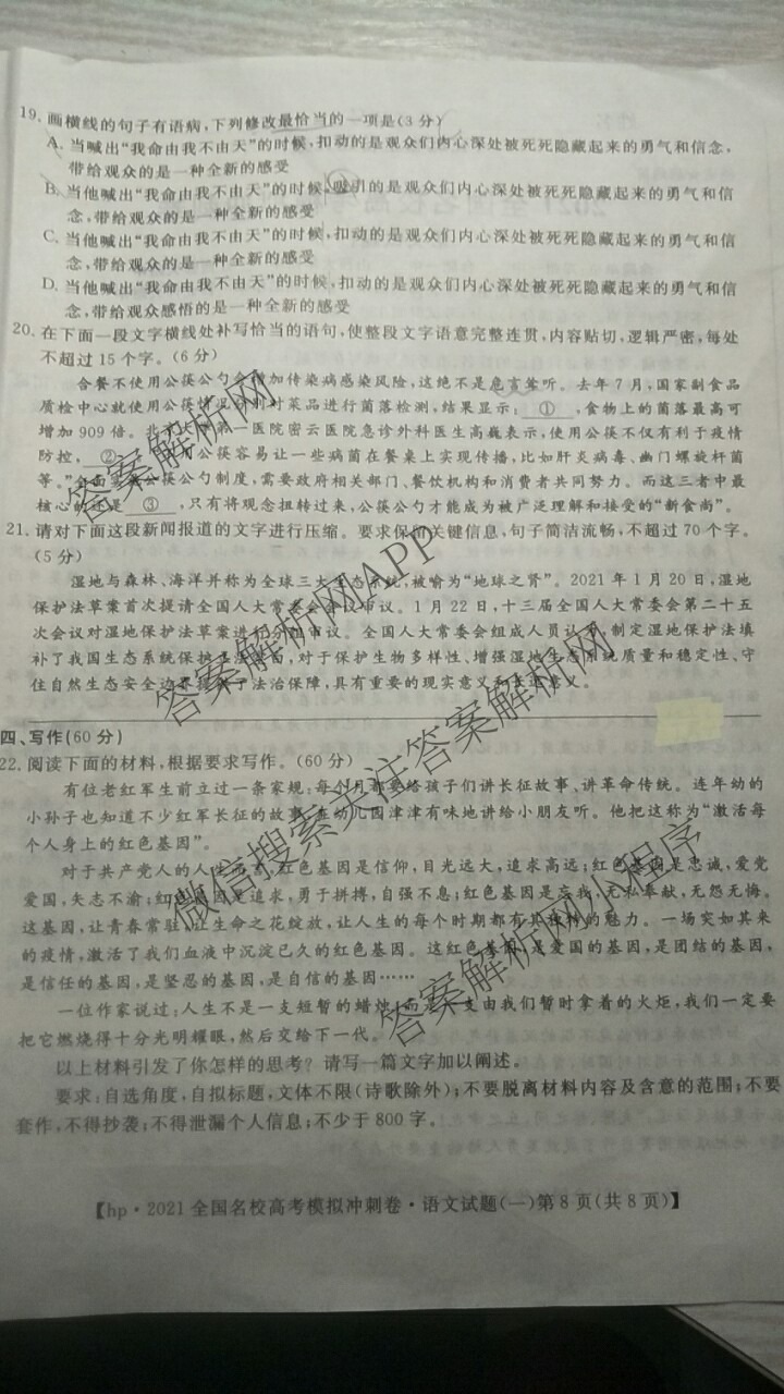 华普教育·2021全国名校高考模拟冲刺卷(一)语文试题,目前分科卷答案网已经汇总了华普教育·2021全国名校高考模拟冲刺卷(一)语文试题的各科答案和试卷,获取更多华普教育答案解析,请在关注本站。