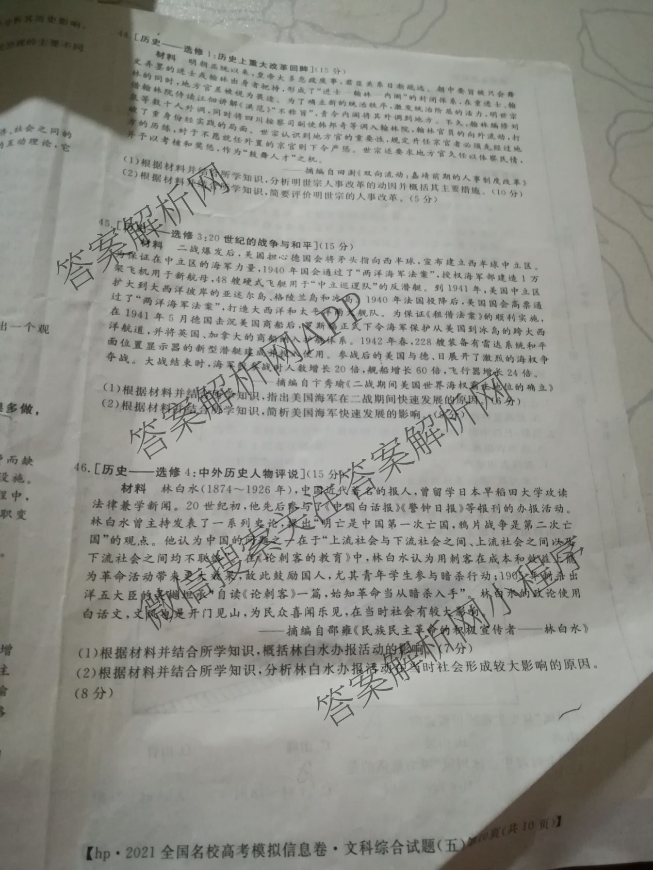 (华普教育)2021全国名校高考模拟信息卷(五)文科综合试题