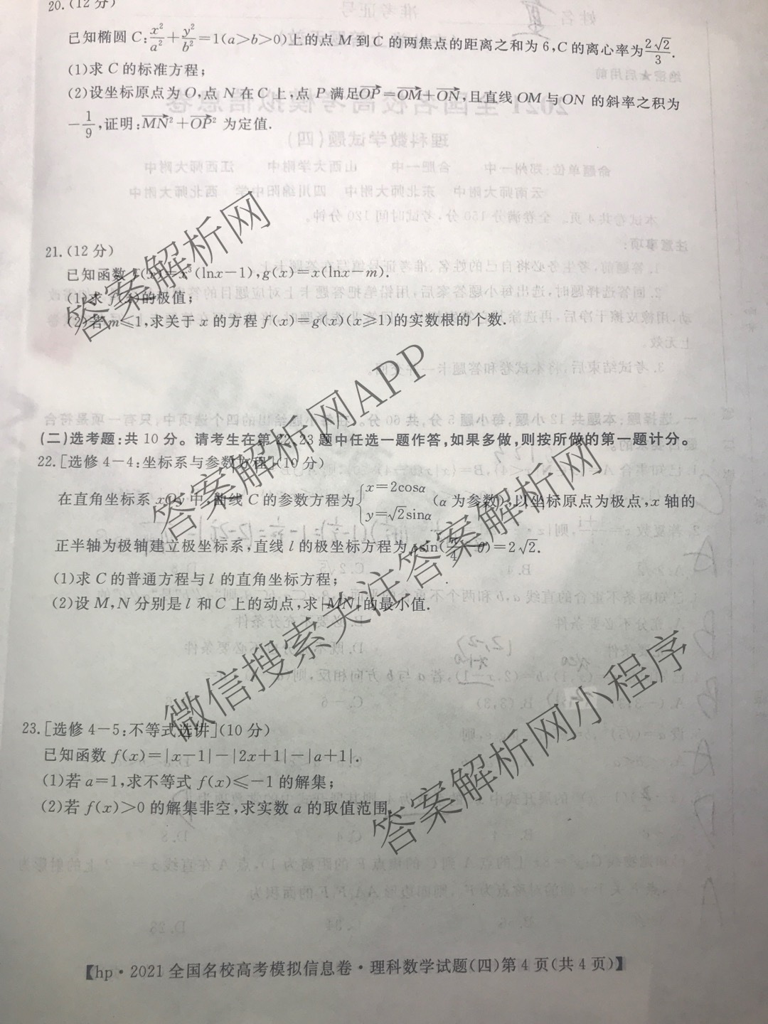 华普教育·2021全国名校高考模拟信息卷(四)理科数学试题,目前分科卷答案网已经汇总了华普教育·2021全国名校高考模拟信息卷(四)理科数学试题的各科答案和试卷,获取更多华普教育答案解析,请在关注本站。