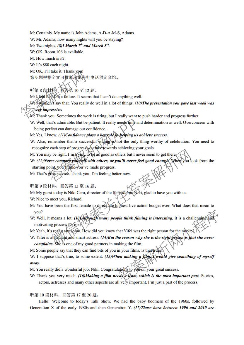 2021届江南十校一模联考英语答案