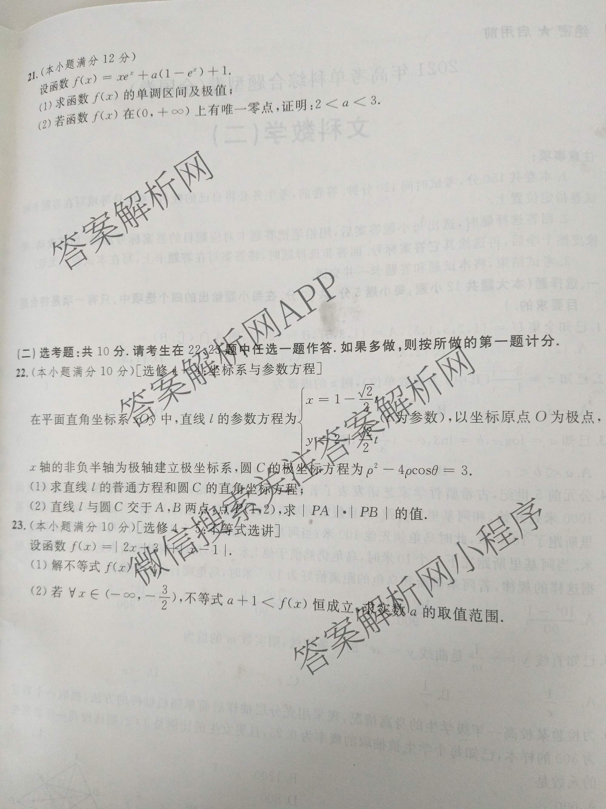2021年高考单科综合题型卷(全国卷)二文科数学试题,目前分科卷答案网已经汇总了2021年高考单科综合题型卷(全国卷)二文科数学试题的各科答案和试卷,获取更多高考单科综合题型卷答案解析,请在关注本站。