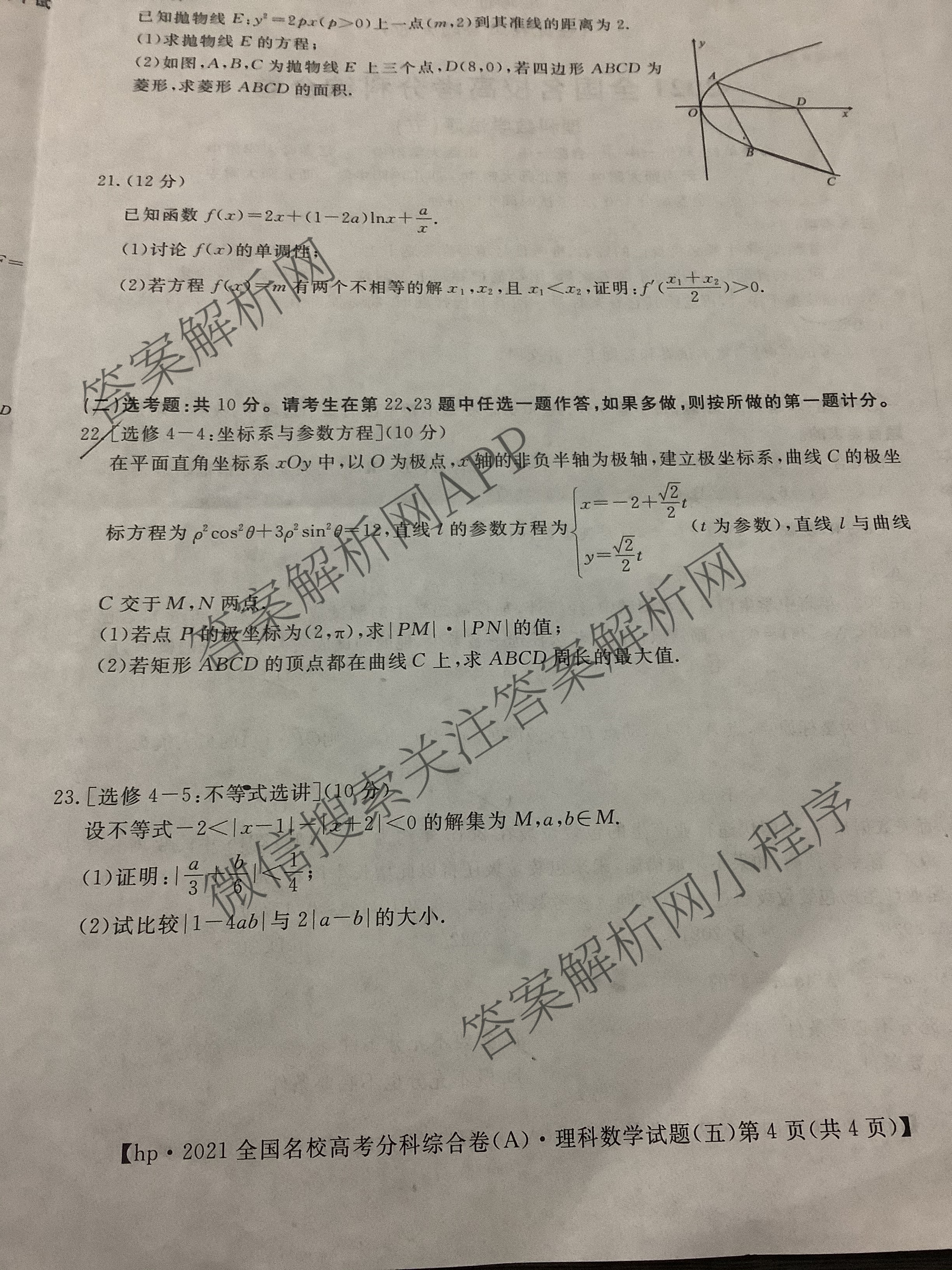 华普教育·2021全国名校高考分科综合卷(五)5理科数学试题,目前分科卷答案网已经汇总了华普教育·2021全国名校高考分科综合卷(五)5理科数学试题的各科答案和试卷,获取更多华普教育答案解析,请在关注本站。