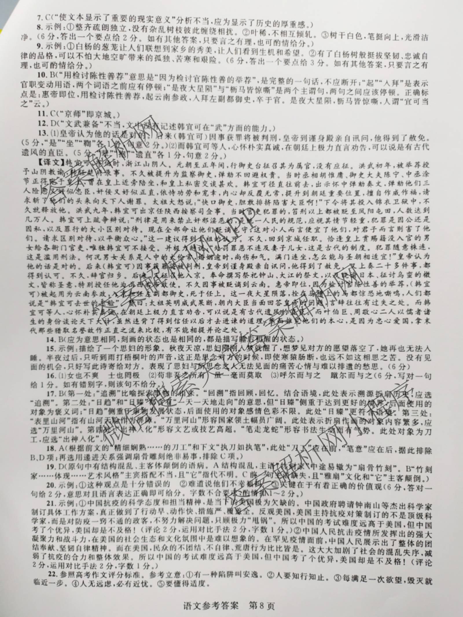 2021年(高考单科综合题型卷)(全国卷)六语文答案