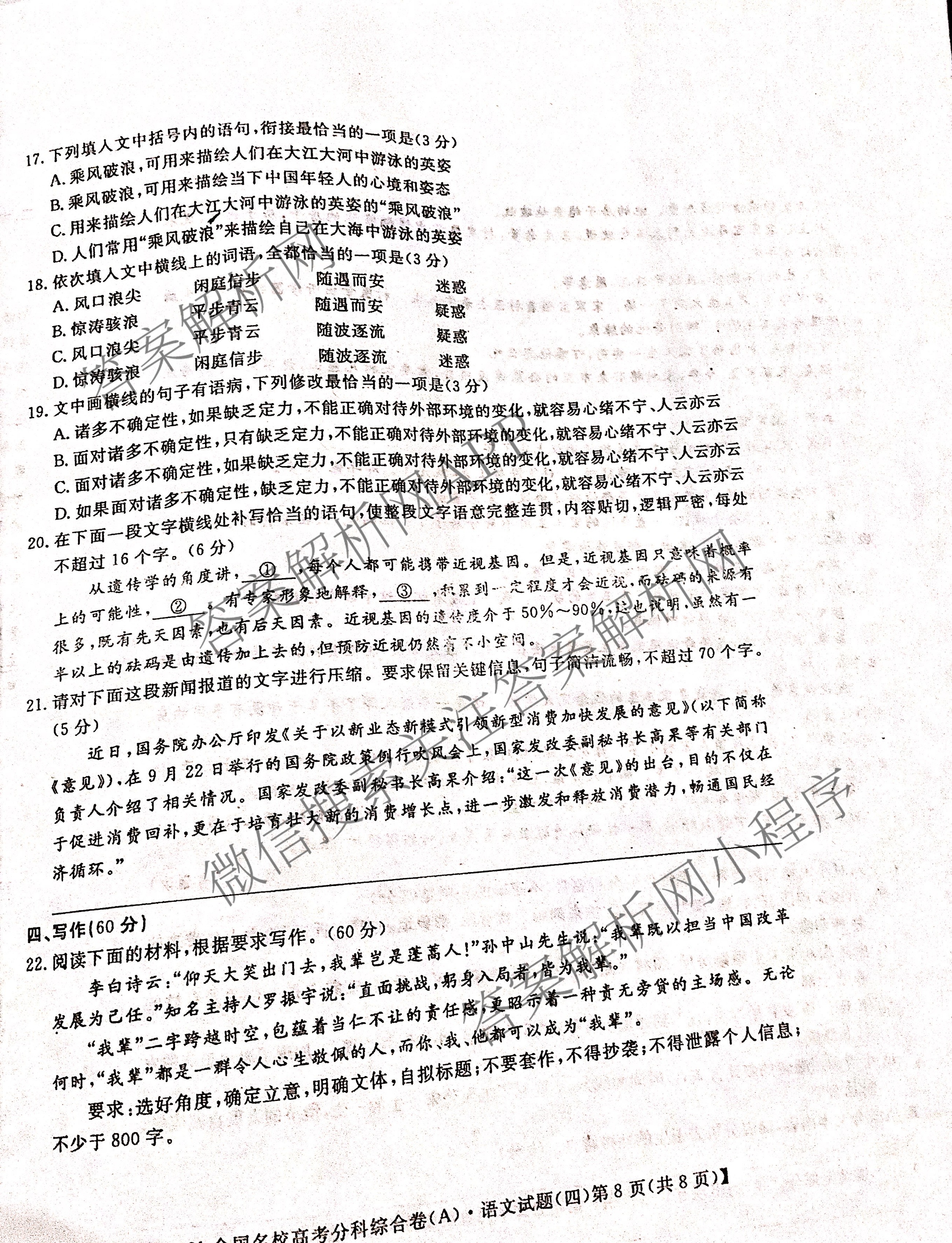 华普教育·2021全国名校高考分科综合卷(四)4语文试题,目前分科卷答案网已经汇总了华普教育·2021全国名校高考分科综合卷(四)4语文试题的各科答案和试卷,获取更多华普教育答案解析,请在关注本站。