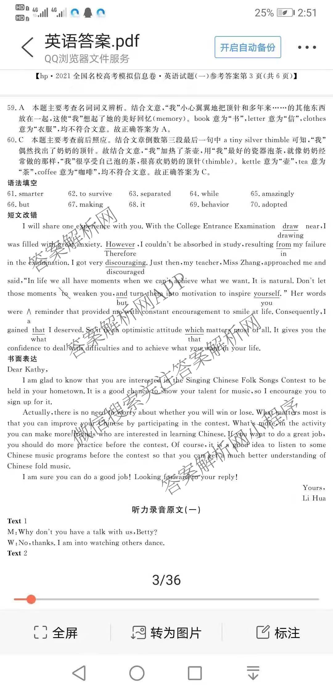 华普教育·2021全国名校高考模拟信息卷(一)英语答案,目前分科卷答案网已经汇总了华普教育·2021全国名校高考模拟信息卷(一)英语答案的各科答案和试卷,获取更多华普教育答案解析,请在关注本站。