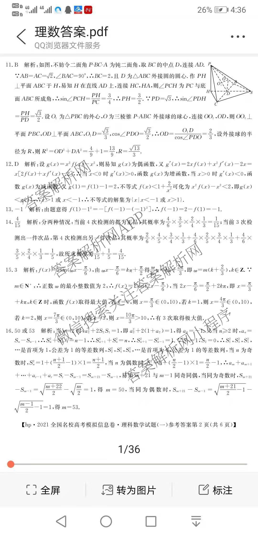 - [高三](华普教育)·2021全国名校高考模拟信息卷(一)理科数学答案
