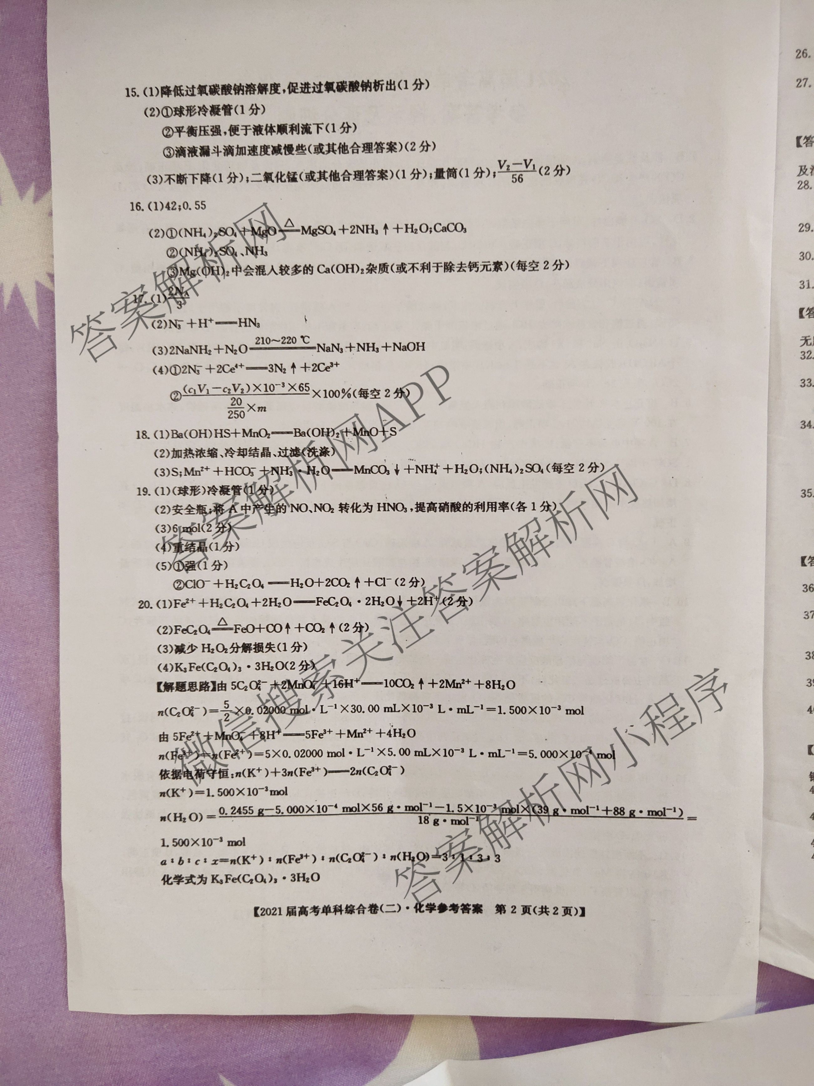 2021届高考单科综合卷(二)化学答案,目前分科卷答案网已经汇总了2021届高考单科综合卷(二)化学答案的各科答案和试卷,获取更多高考单科综合卷答案解析,请在关注本站。