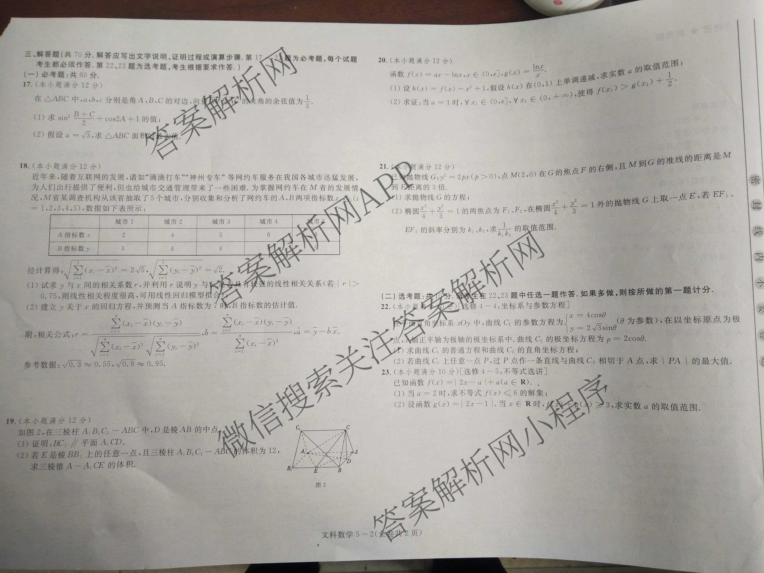 2021年高考单科综合题型卷(全国卷)五文科数学试题,目前分科卷答案网已经汇总了2021年高考单科综合题型卷(全国卷)五文科数学试题的各科答案和试卷,获取更多高考单科综合题型卷答案解析,请在关注本站。