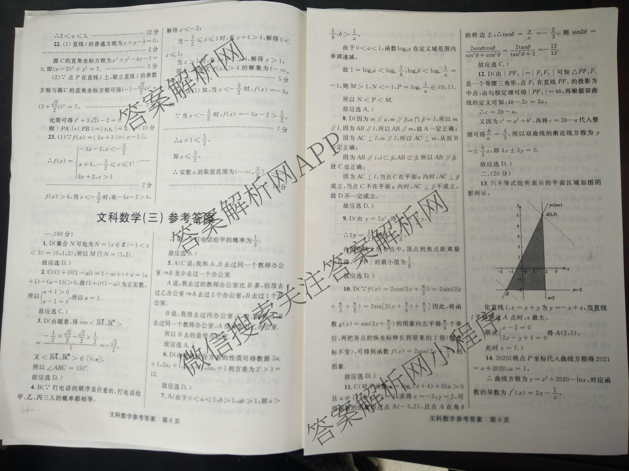 2021年(高考单科综合题型卷)(全国卷)二文科数学答案