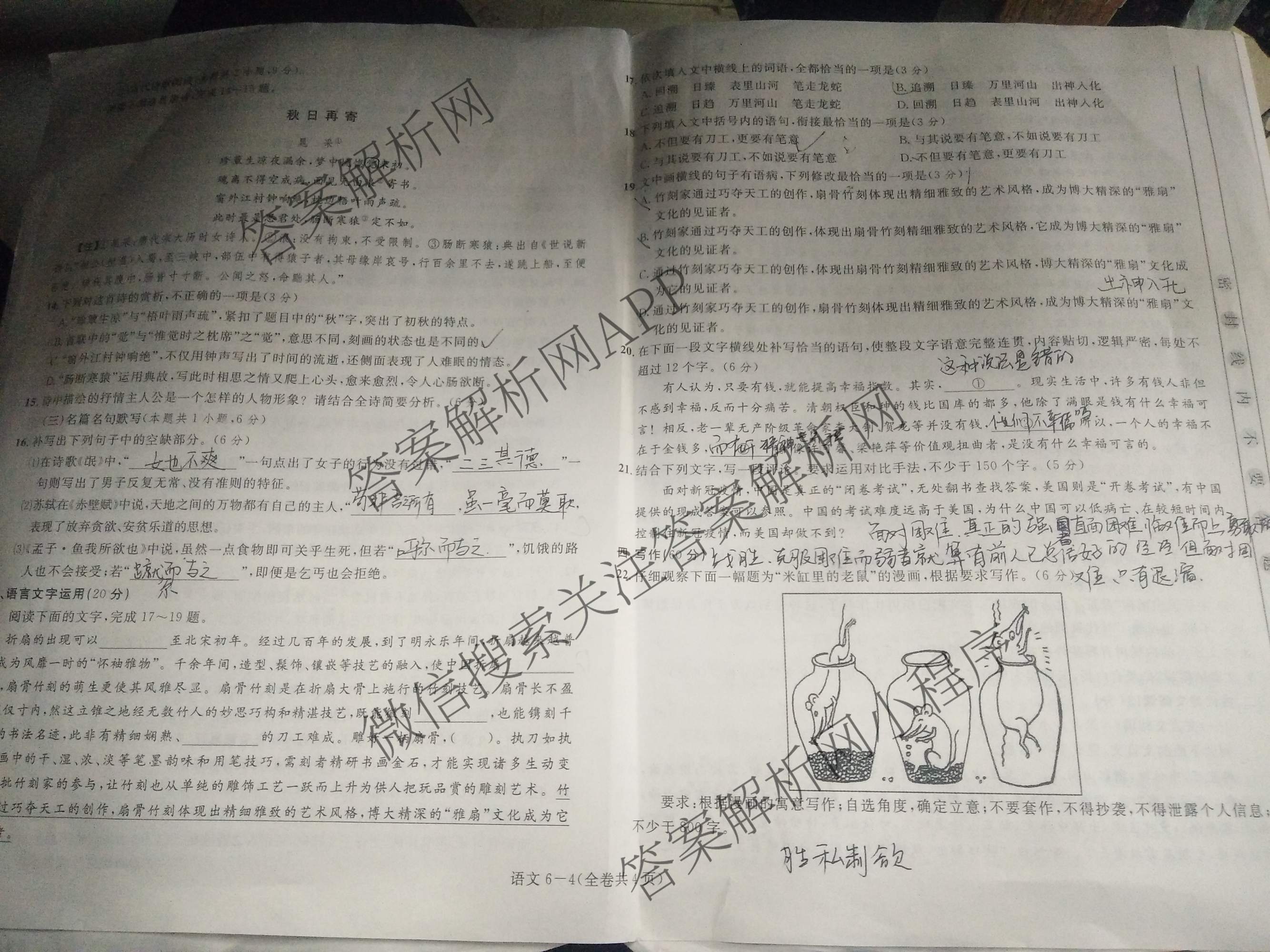 - 2021年(高考单科综合题型卷)(全国卷)六语文答案